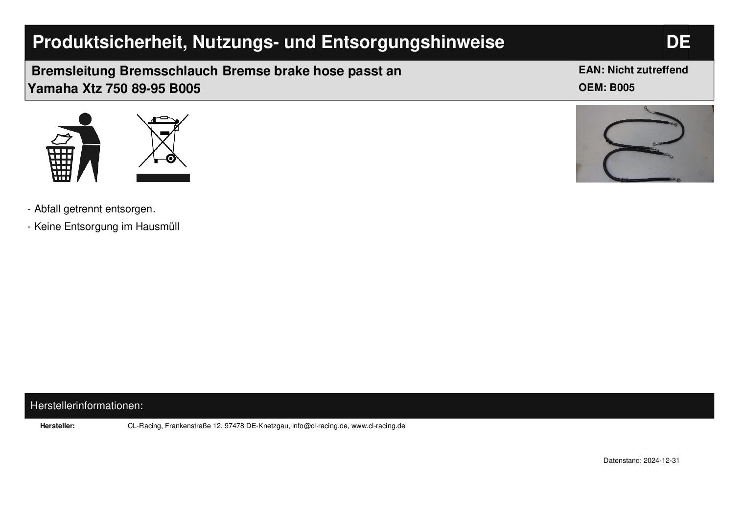 In dieser Auktion gibt es folgenden Artikel zu kaufen: Bremsschlauch (siehe Foto) Modell: passend für Yamaha XTZ 750 Bj.: 89 - 95 Lieferumfang: siehe Foto Artikelzustand: neu aus Geschäftsauflösung, mit leichten Lagerspuren; Zustand siehe Foto Bei Unklarheiten oder Fragen bitte erst E-Mail schreiben.