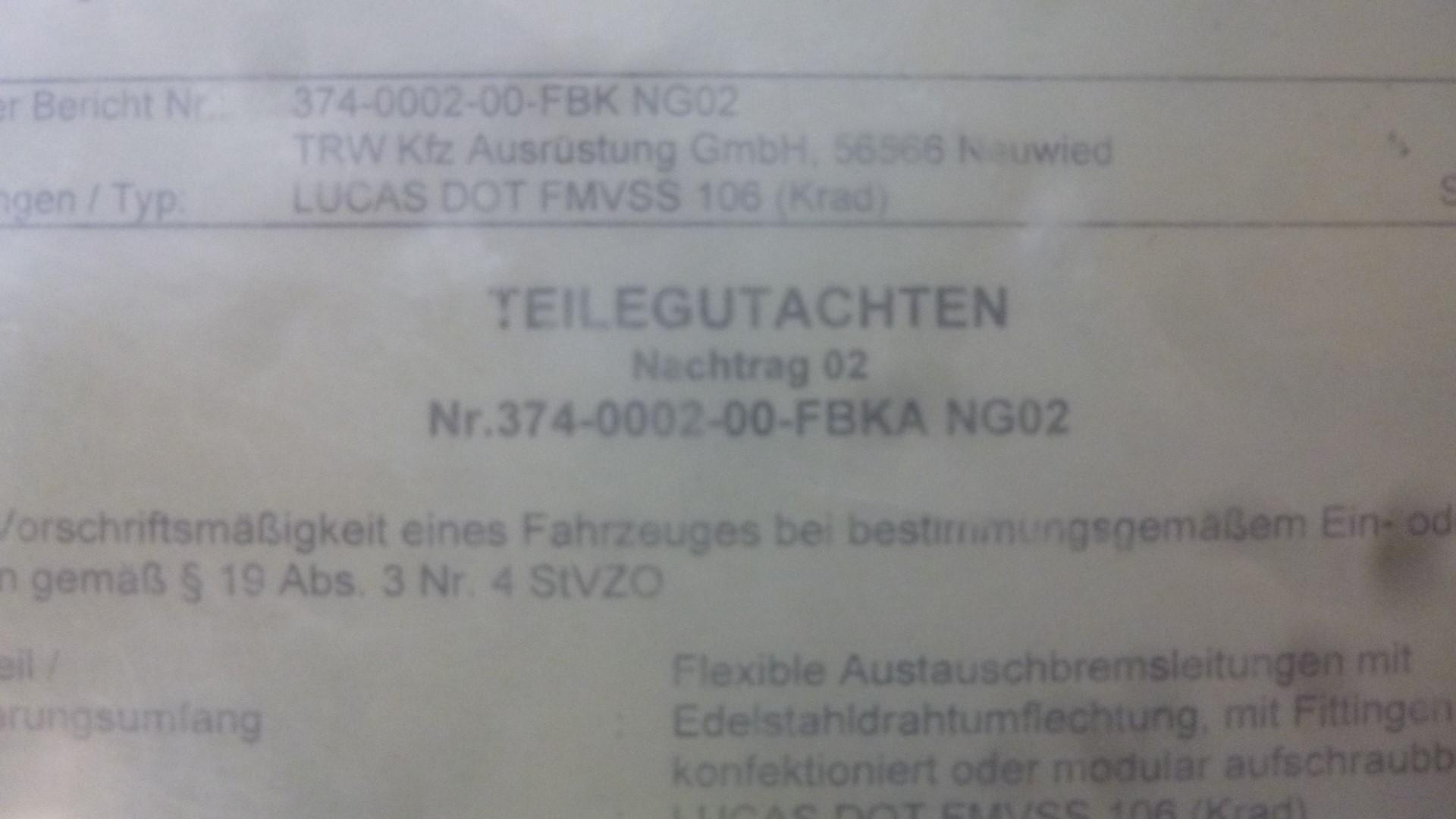 In dieser Auktion gibt es folgenden Artikel zu kaufen: Bremsleitung mit ABE (siehe Foto) Modell: passend für Yamaha FZS 600 Bj.: 98 Lieferumfang: siehe Foto Artikelzustand: neu aus Geschäftsauflösung, mit leichten Lagerspuren; Zustand siehe Foto Bei Unklarheiten oder Fragen bitte erst E-Mail schreiben.