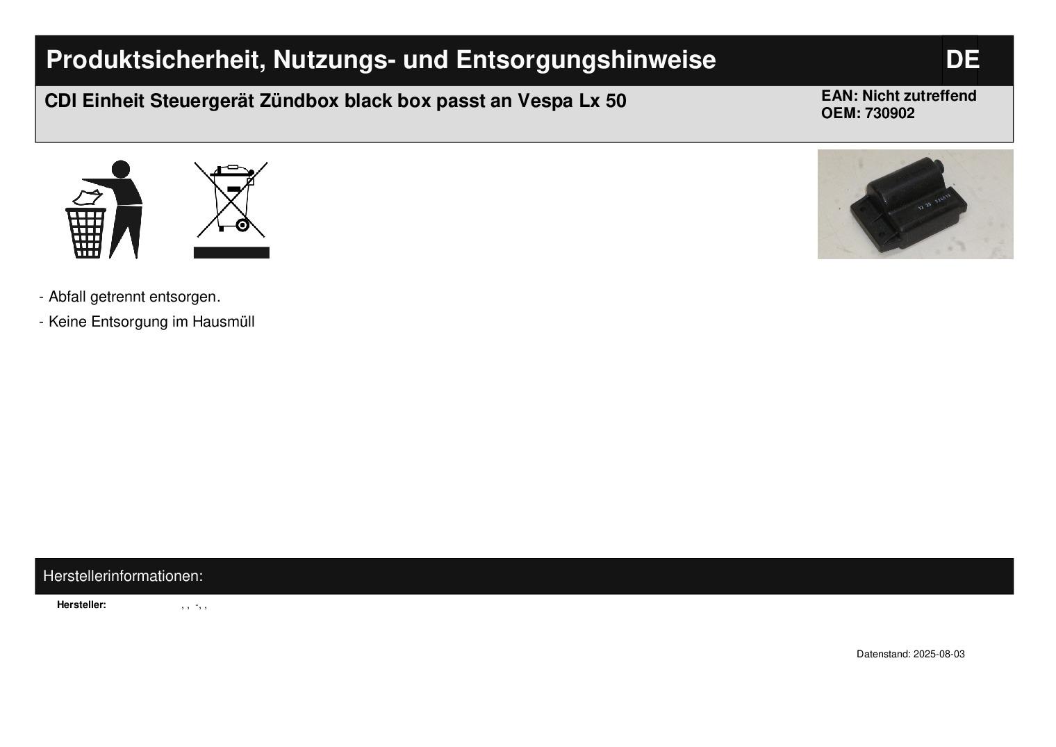 In dieser Auktion gibt es folgenden Artikel zu kaufen: CDI-Einheit (siehe Foto) Modell: passend für Vespa LX 50 Bj.: unbekannt Lieferumfang: siehe Foto Artikelzustand: neu aus Geschäftsauflösung, mit minimalen Lagerspuren; Zustand siehe Foto Bei Unklarheiten oder Fragen bitte erst E-Mail schreiben.