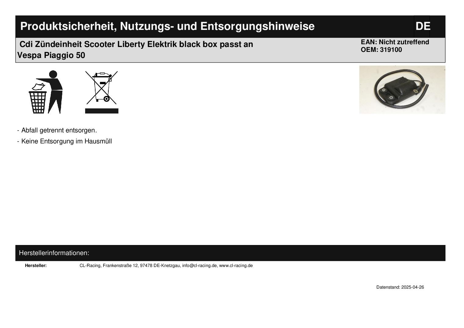 In dieser Auktion gibt es folgenden Artikel zu kaufen: CDI Zündeinheit (siehe Foto) Hersteller: Scooter Libre Modell: passend für Vespa