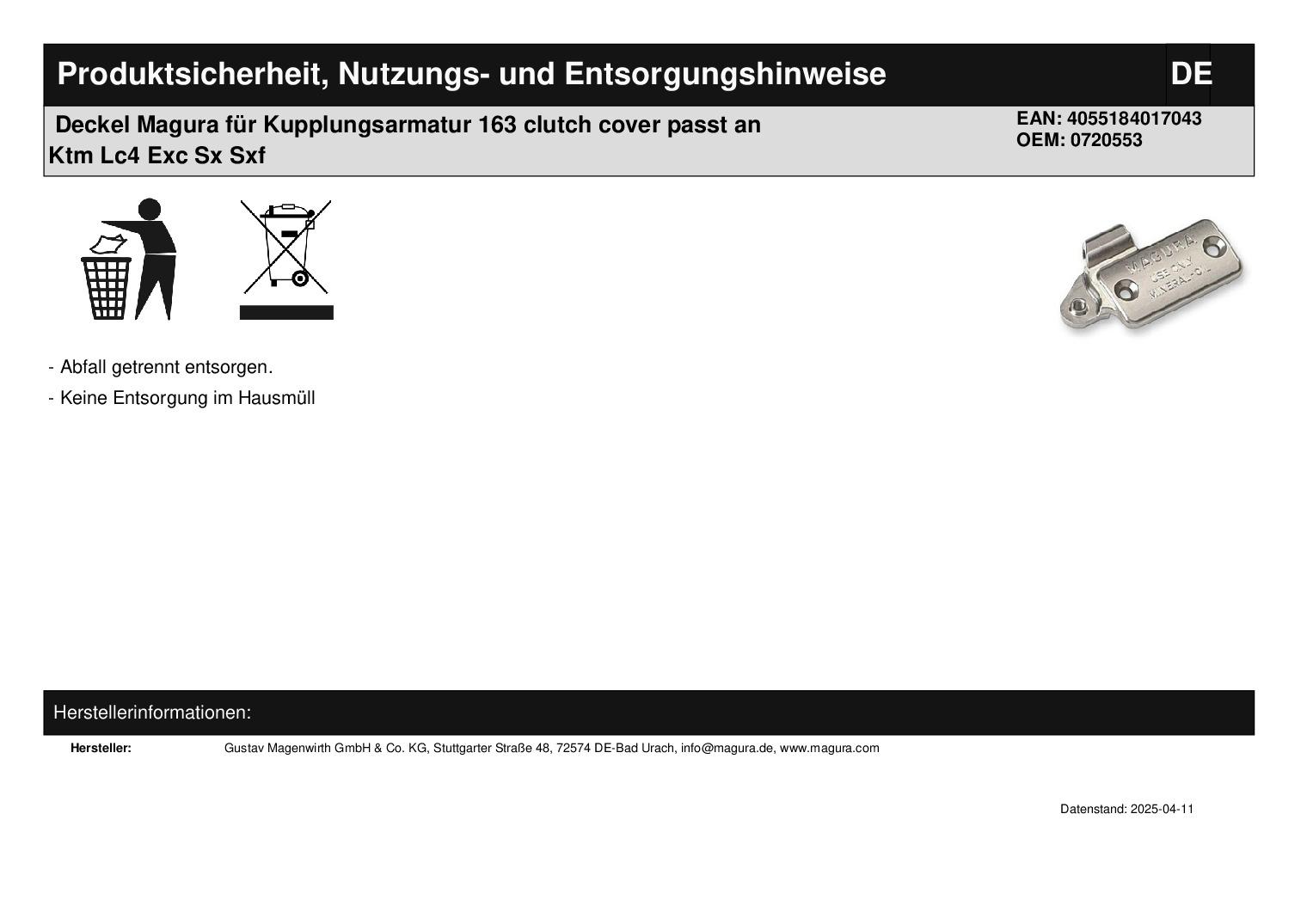 In dieser Auktion gibt es folgenden Artikel zu kaufen: Deckel für Kupplungsarmatur mit Gewinde für Dekohalter (siehe Foto) Modell : passend für Ktm Lc4, Exc, Sx, Sxf Bj.: unbekannt Lieferumfang: 1 Stück Artikelzustand: neu