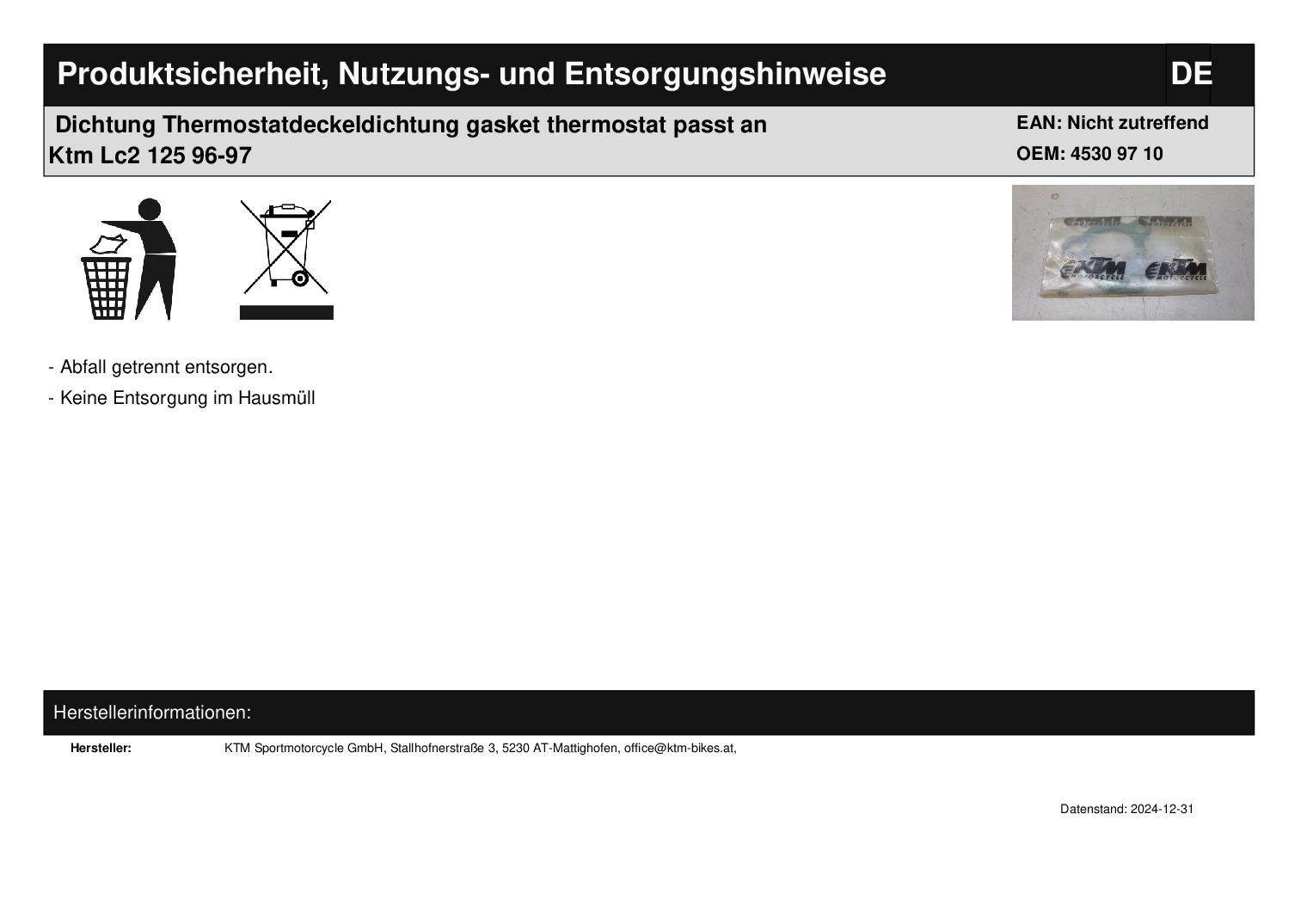 In dieser Auktion gibt es folgenden Artikel zu kaufen: Thermostatdeckeldichtung (siehe Foto) Modell: passend für KTM LC2 125 Bj.: 96 - 97 Sting 125 Bj.: 97 Lieferumfang: siehe Foto Artikelzustand: neu aus Geschäftsauflösung, mit minimalen Lagerspuren; Zustand siehe Foto Bei Unklarheiten oder Fragen bitte erst E-Mail schreiben.