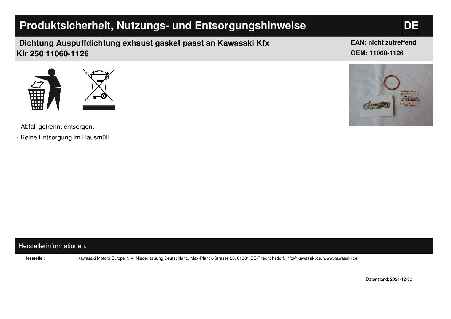 In dieser Auktion gibt es folgenden Artikel zu kaufen: Auspuffdichtung (siehe Foto) Modell: passend für Kawasaki KFX 250 Bj.: 01 - 03 KLR 250 Bj.: 87 - 99 Lieferumfang: siehe Foto Artikelzustand: neu aus Geschäftsauflösung, mit minimalen Lagerspuren; Zustand siehe Foto Bei Unklarheiten oder Fragen bitte erst E-Mail schreiben.