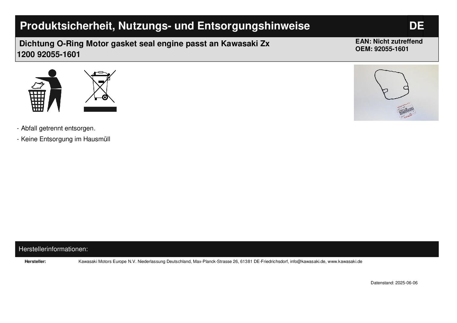 Titel: Dichtung O-Ring Motor gasket seal engine passt an Kawasaki Zx 1200 92055-1601