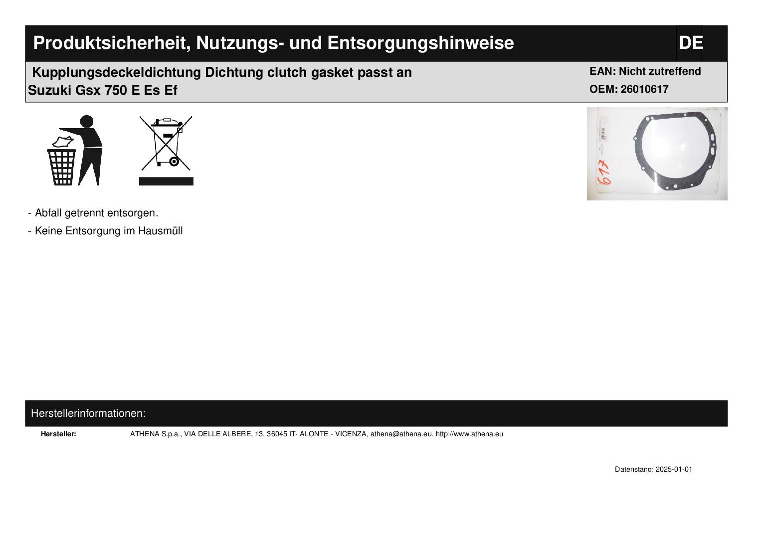 In dieser Auktion gibt es folgenden Artikel zu kaufen: Dichtung (siehe Foto) Modell: passend für Suzuki GSX 750 E/ES/EF Bj.: unbekannt Lieferumfang: 1 Stück Artikelzustand: neu aus Geschäftsauflösung, mit minimalen Lagerspuren; Zustand siehe Foto
