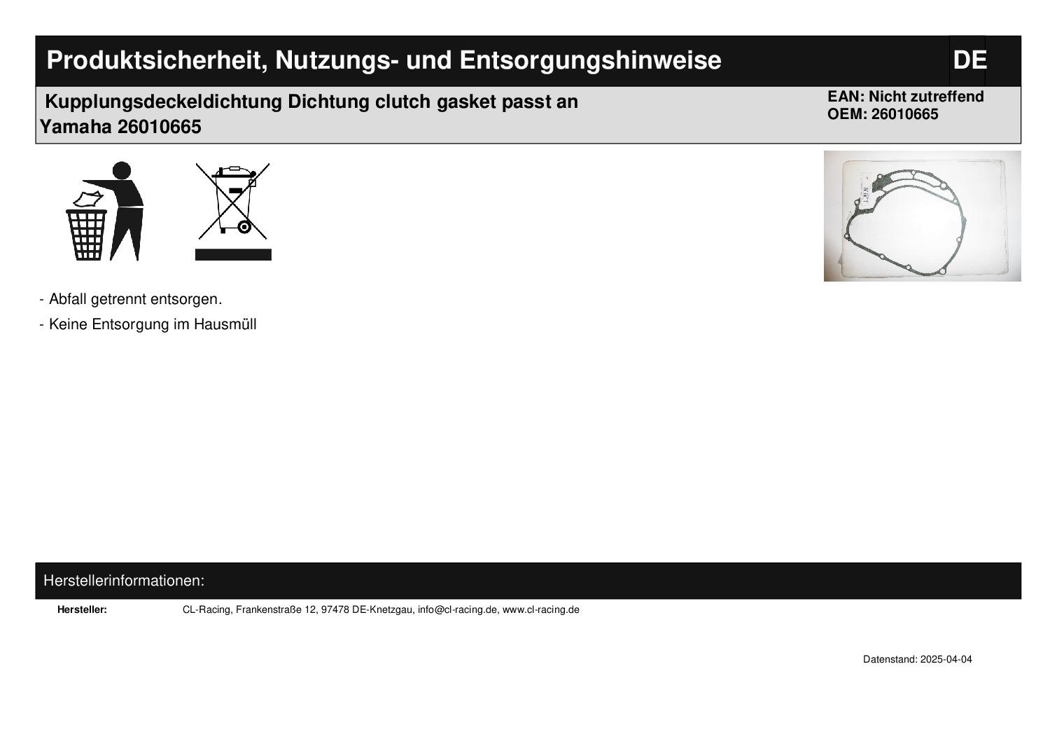 • Kupplungsdeckeldichtung Dichtung clutch gasket passt an Yamaha Xj 600 92-03 Xjr