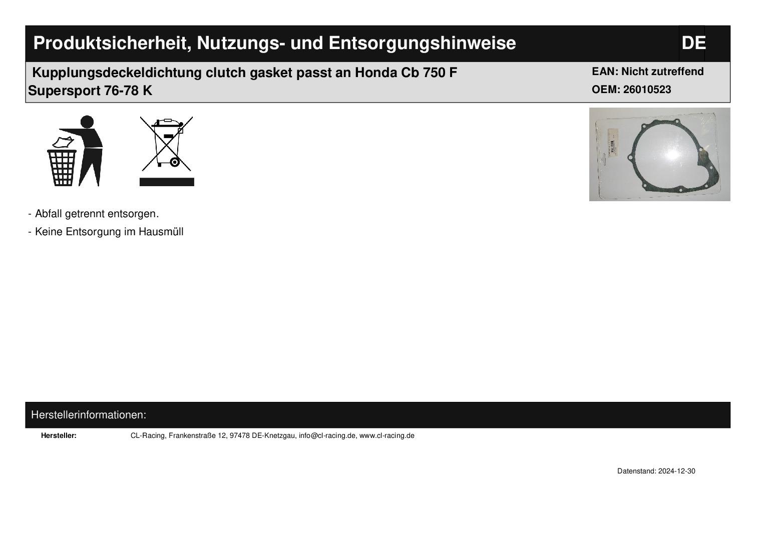 • Kupplungsdeckeldichtung clutch gasket passt an Honda Cb 750 F Supersport 76-78 K