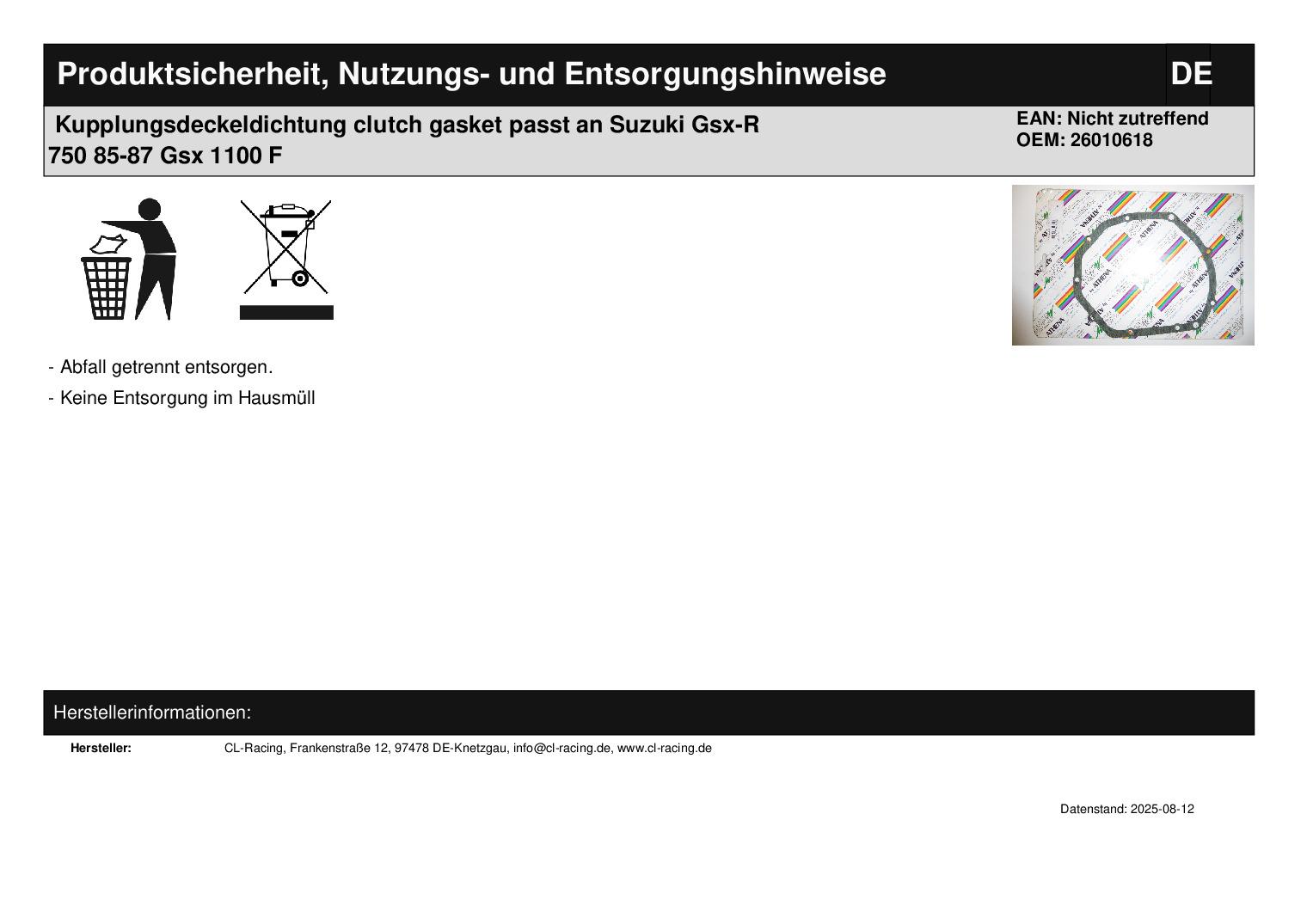 In dieser Auktion gibt es folgenden Artikel zu kaufen: Dichtung (siehe Foto) Modell: passend für Suzuki GSX-R 750 Bj.: 85 - 87 GSX 750F Bj.: 88 - 89 GSX 1100F Bj.: 88 - 94 GSX-R 1100 Bj.: 86 - 93 Lagerumfang: 1 Stück Artikelzustand: neu aus Geschäftsauflösung, mit minimalen Lagerspuren; Zustand siehe Foto