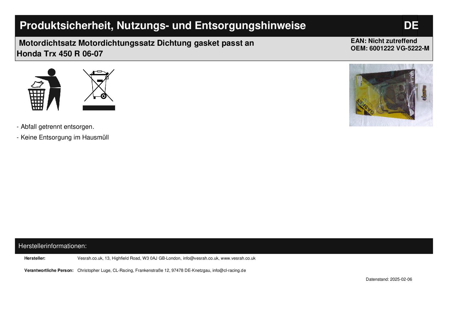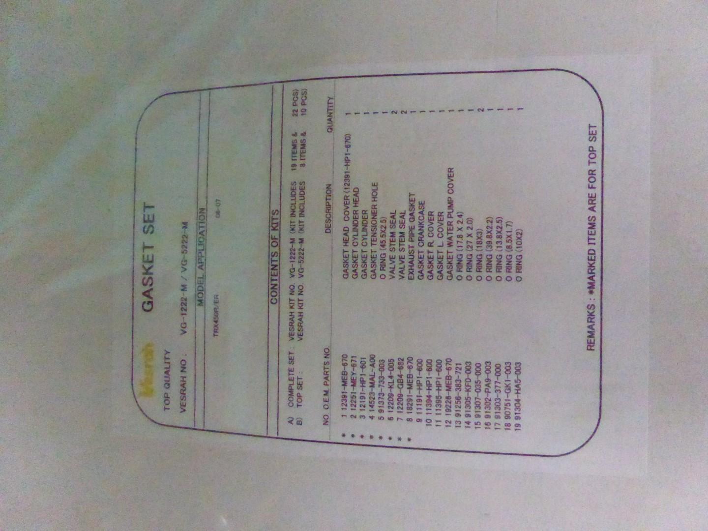 In dieser Auktion gibt es folgenden Artikel zu kaufen: Motordichtsatz (siehe Foto) Modell: passend für Honda TRX 450 R Bj.: 06 - 07 Lieferumfang: siehe Foto Artikelzustand: neu aus Geschäftsauflösung, mit leichten Lagerspuren; Zustand siehe Foto Bei Unklarheiten oder Fragen bitte erst E-Mail schreiben.