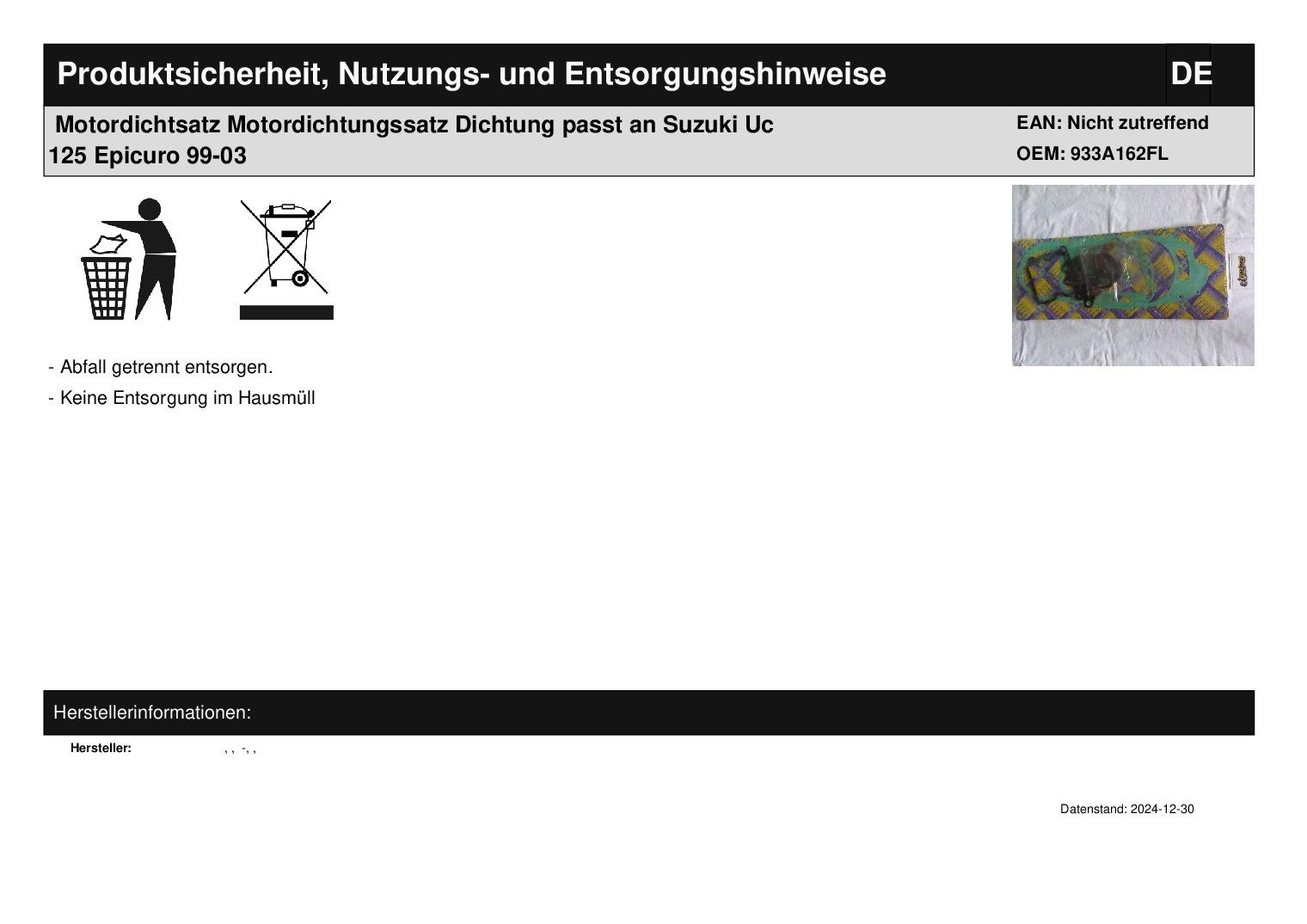 In dieser Auktion gibt es folgenden Artikel zu kaufen: Motordichtsatz (siehe Foto) Modell: passend für Suzuki UC 125 Epicuro Bj.: 99 - 03 Lieferumfang: siehe Foto Artikelzustand: neu Bei Unklarheiten oder Fragen bitte erst E-Mail schreiben.