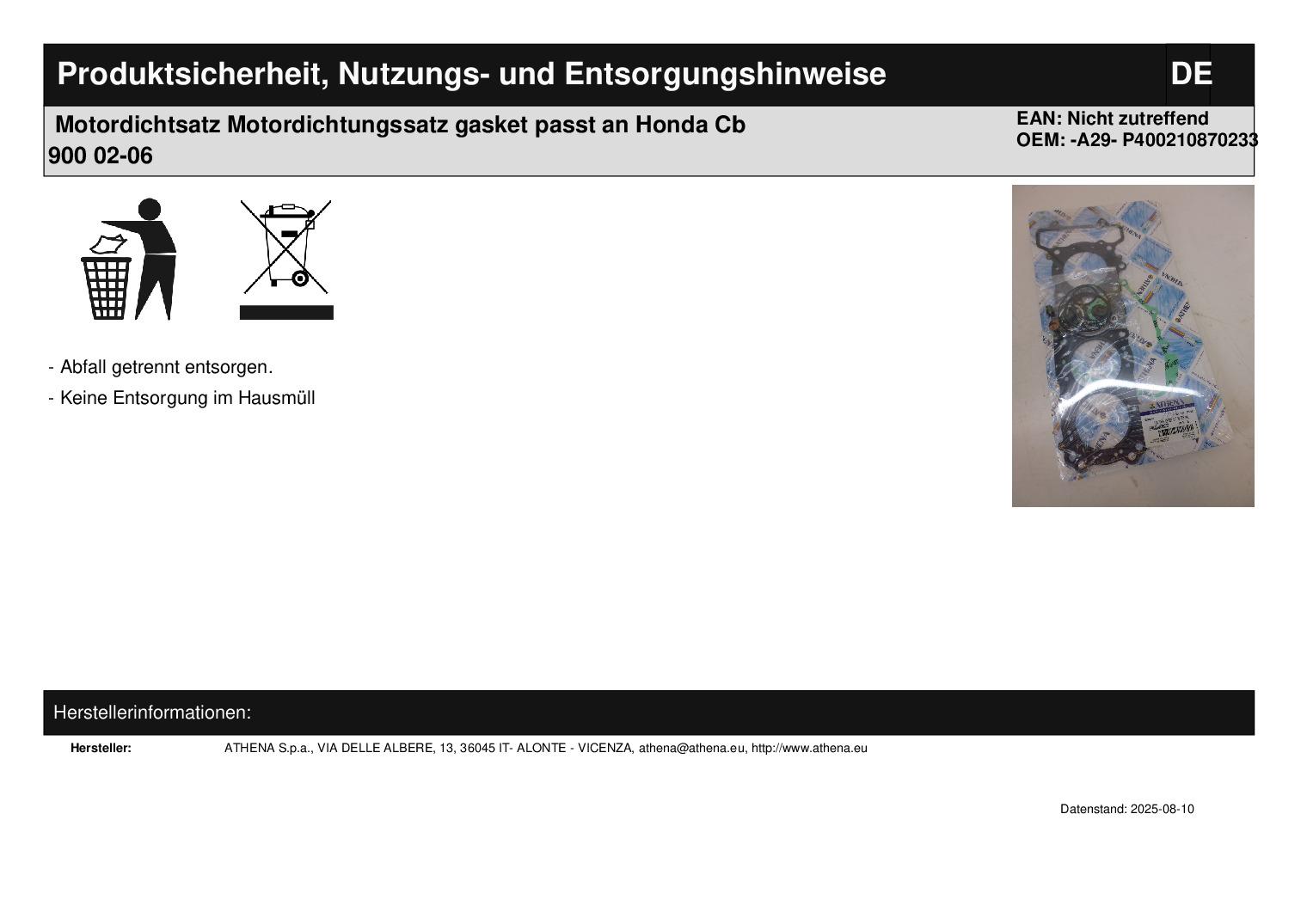 • Motordichtsatz Motordichtungssatz gasket passt an Honda Cb 900 02-06