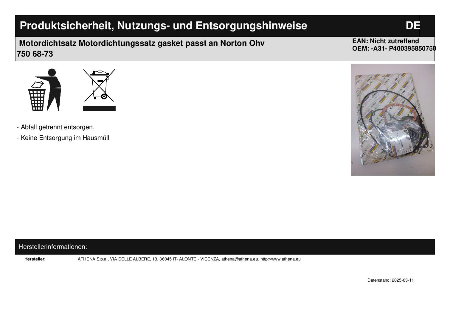 Titel: Motordichtsatz Motordichtungssatz gasket passt an Norton Ohv 750 68-73
