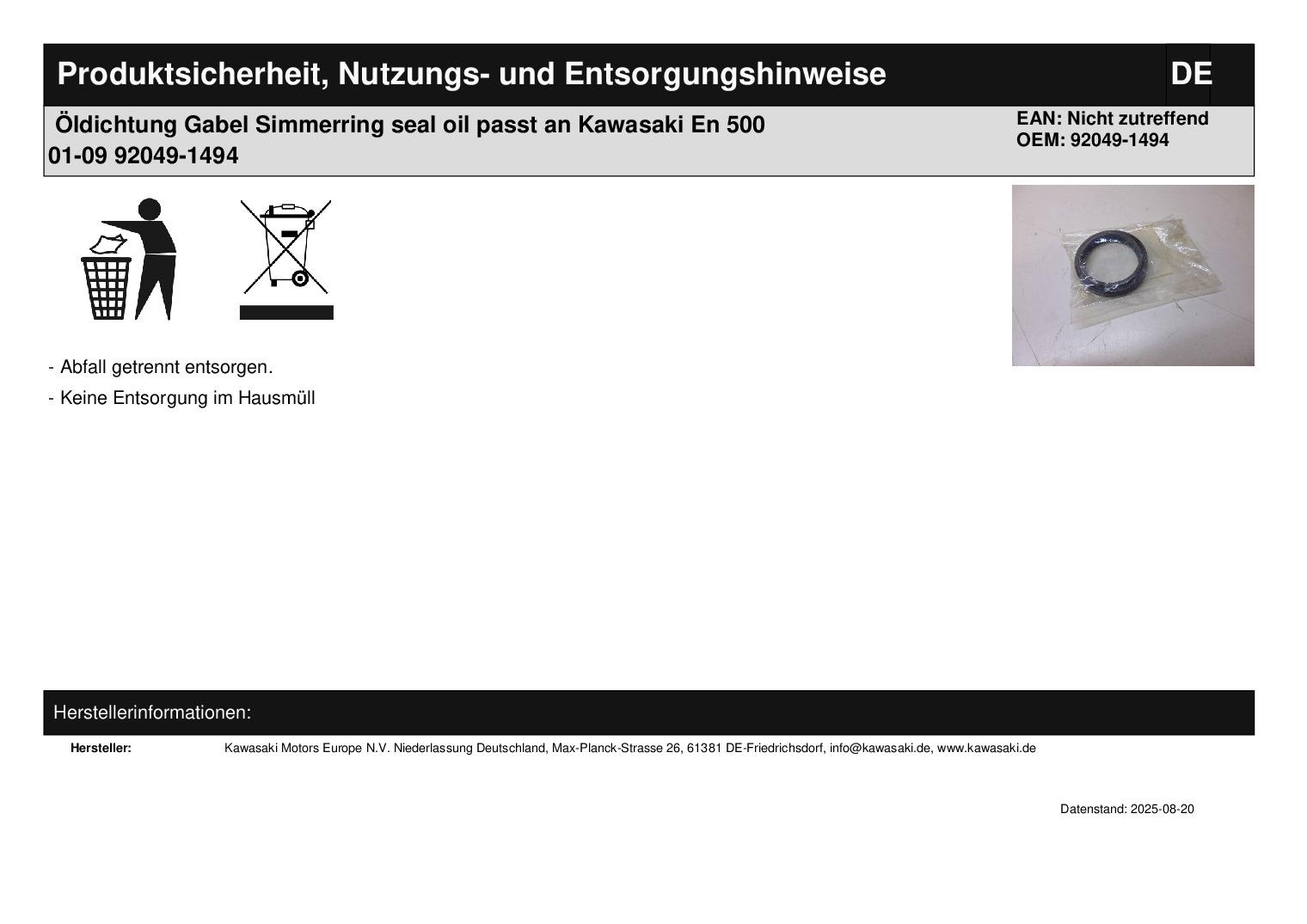 In dieser Auktion gibt es folgenden Artikel zu kaufen: Öldichtung (siehe Foto) Modell: passend für Kawasaki EN 500 Bj.: 01 - 09 Lieferumfang : 1 Stück Artikelzustand: neu aus Geschäftsauslösung, mit minimalen Lagerspuren; Zustand siehe Foto Bei Unklarheiten oder Fragen bitte erst E-Mail schreiben.