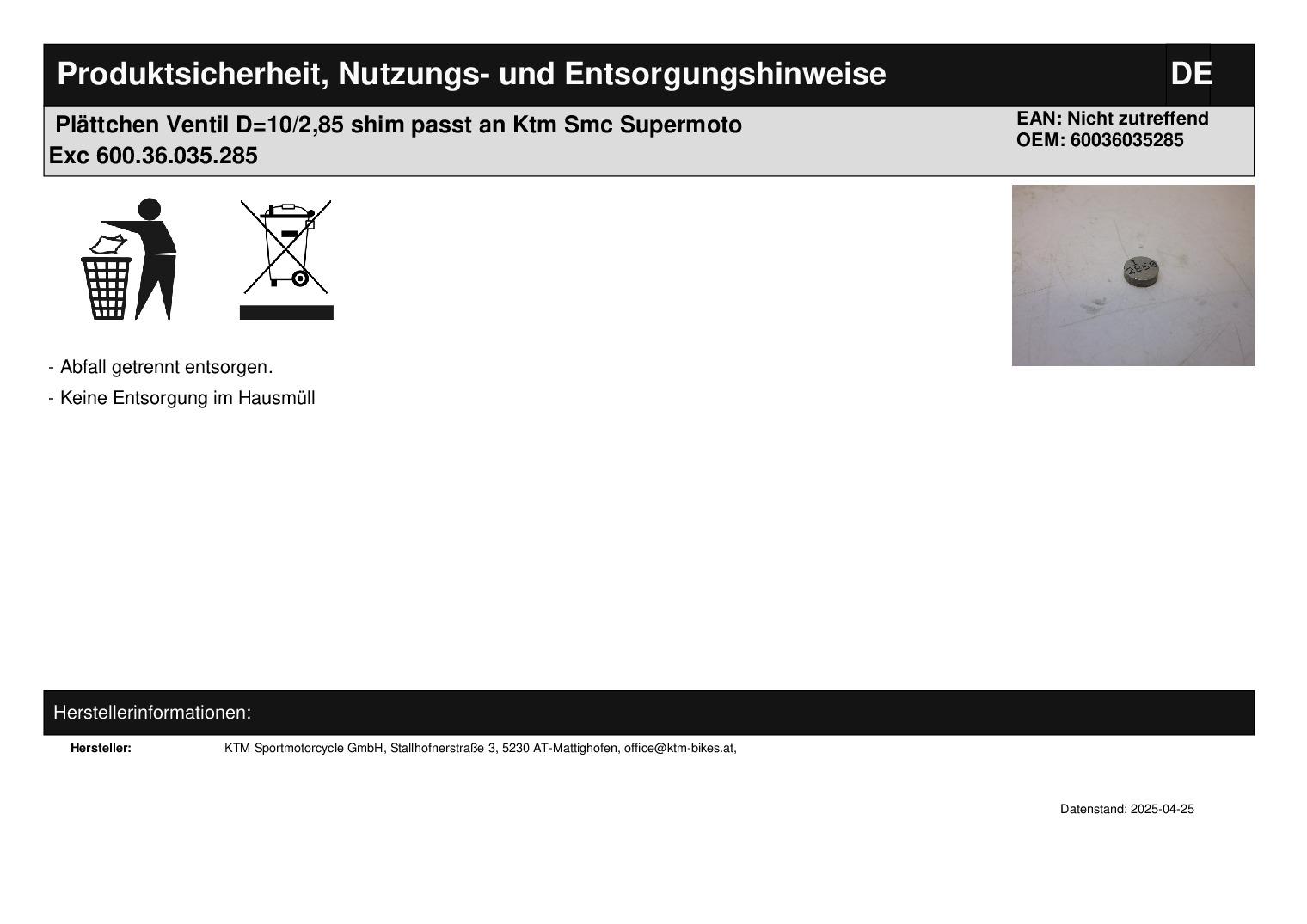 In dieser Auktion gibt es folgenden Artikel zu kaufen: Plättchen (siehe Foto) Modell: passend für Ktm Smc, Supermoto, Exc, Duke Bj.: unbekannt Lieferumfang: siehe Foto Artikelzustand: neu aus Geschäftsauflösung, mit minimalen Lagerspuren; Zustand siehe Foto Bei Unklarheiten oder Fragen bitte erst E-Mail schreiben.