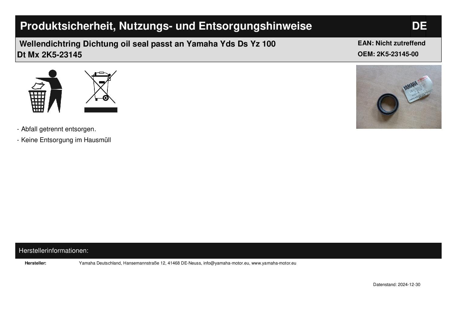 Titel: Wellendichtring Dichtung oil seal passt an Yamaha Yds Ds Yz 100 Dt Mx 2K5-23145