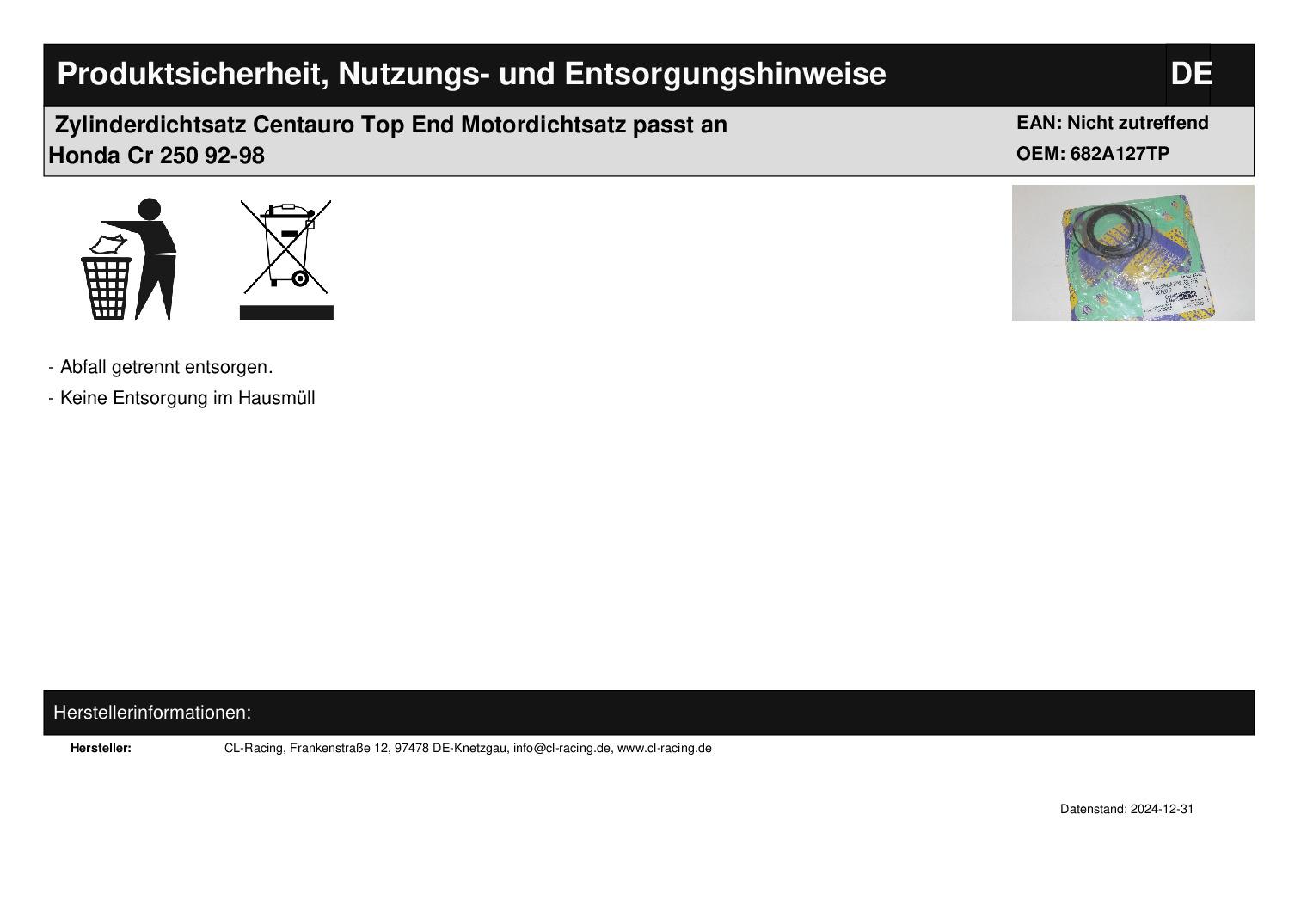 In dieser Auktion gibt es folgenden Artikel zu kaufen: Top-End-Zylinderdichtsatz (siehe Foto) Hersteller: Centauro Modell: passend für Honda CR 250 Bj.: 92 - 98 passend für Husqvarna WR/WRK 250 Bj.: 92 - 98 Lieferumfang: siehe Foto Artikelzustand: neu aus Geschäftsauflösung, mit minimalen Lagerspuren; Zustand siehe Foto Bei Unklarheiten oder Fragen bitte erst E-Mail schreiben.