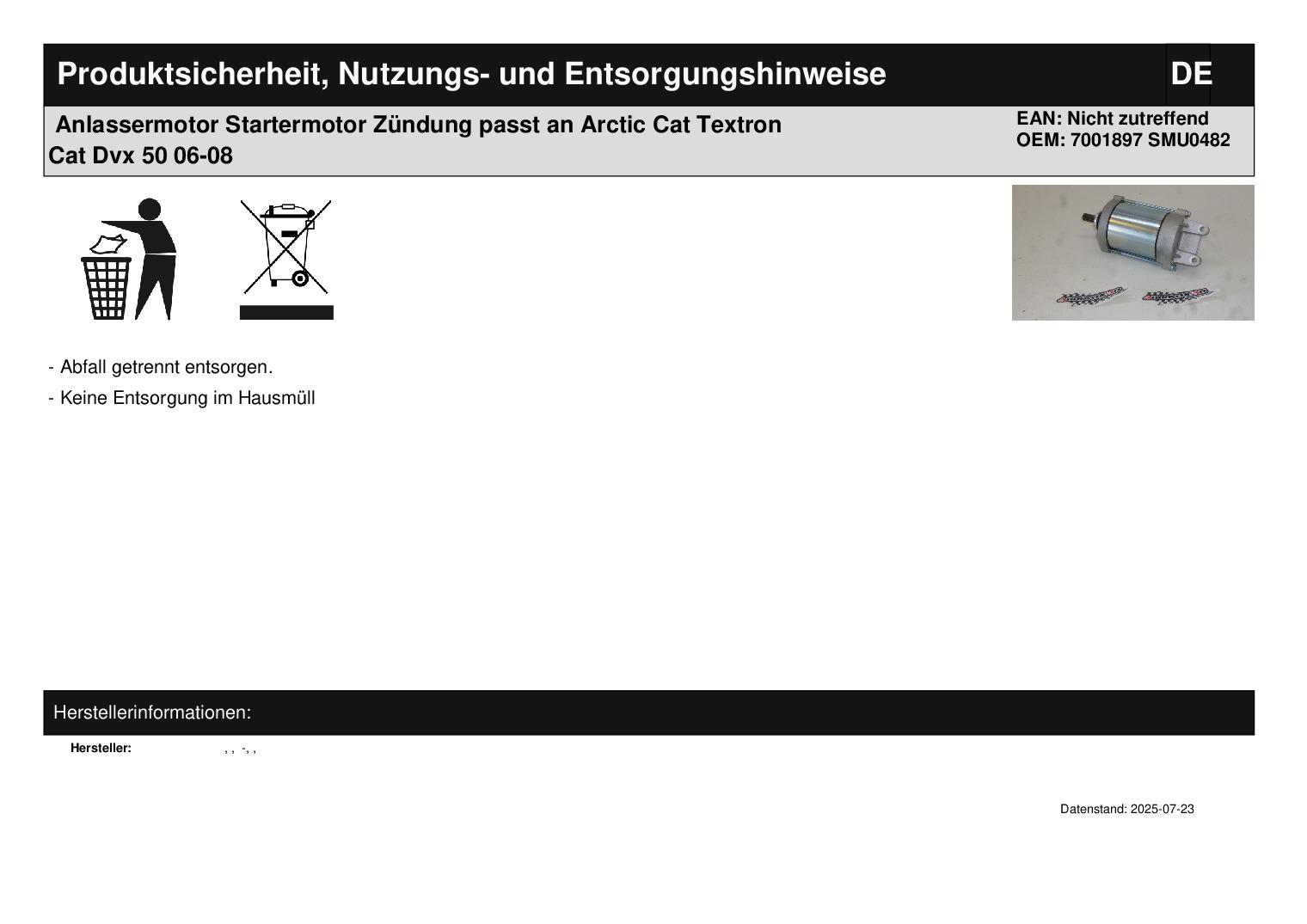 In dieser Auktion gibt es folgenden Artikel zu kaufen: Anlasser aus dem Zubehör (siehe Foto) Modell: passend für Arctic Cat / Textron Cat DVX 50 Bj.: 06 - 08 (4-Takt) Lieferumfang: siehe Foto Artikelzustand: neu Bei Unklarheiten oder Fragen bitte erst E-Mail schreiben.