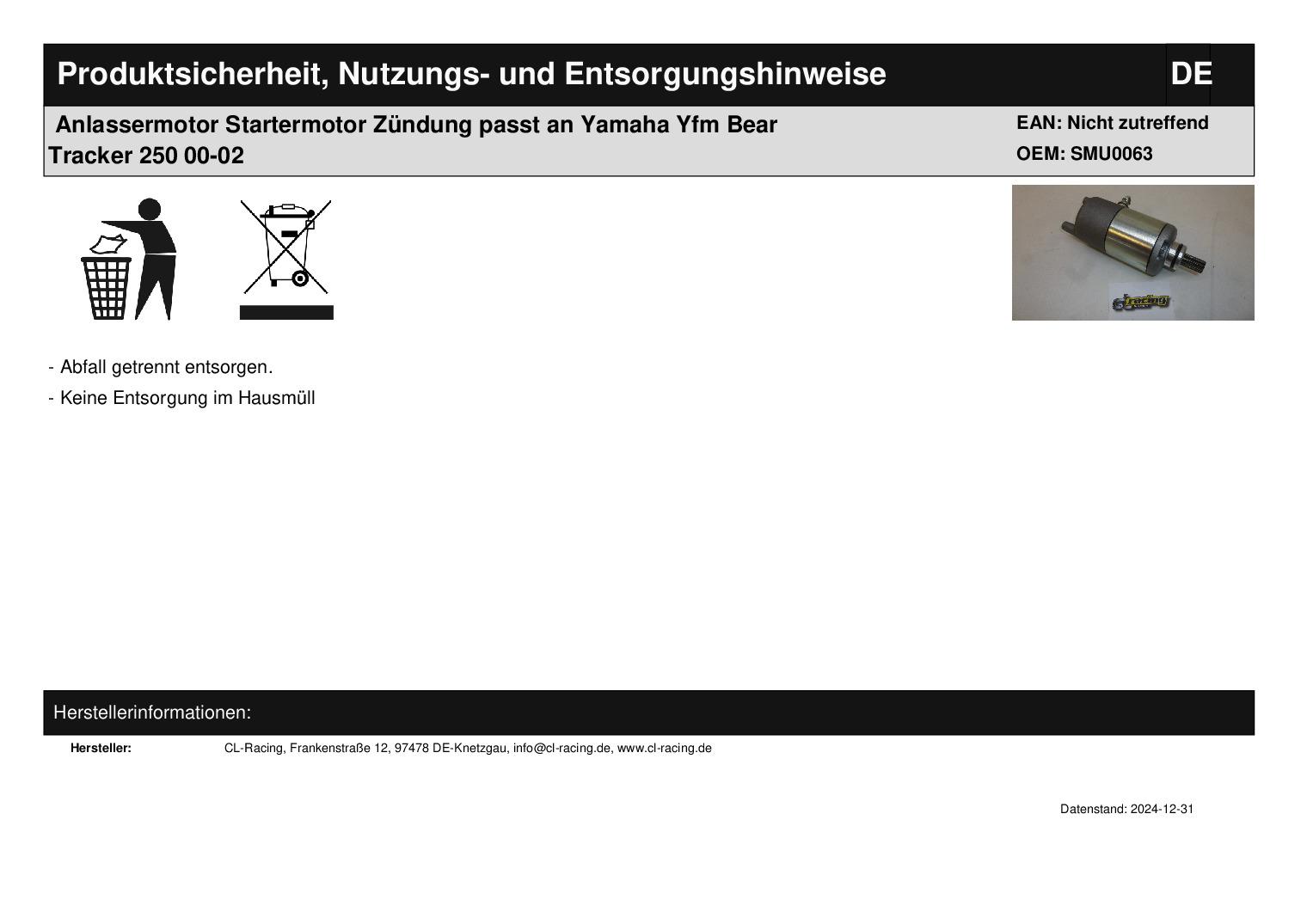 In dieser Auktion gibt es folgenden Artikel zu kaufen: Anlasser aus dem Zubehör (ähnlich Foto) Lieferumfang: 1 Stück Fahrzeug: passend für Yamaha Yfm Bear Tracker 250 Bj.: 2000 - 2002 Yfm 25X Bear Tracker 250 Bj.: 2003 - 2004 Yfm Timberwolf 250 Bj.: 1992 - 2000 Y Tm Tri Moto 200, 225 Bj.: 1983 - 1986 Bohrungsabstand : ca. 47 mm Artikelzustand: neu Bei Unklarheiten oder Fragen bitte erst E-Mail schreiben.