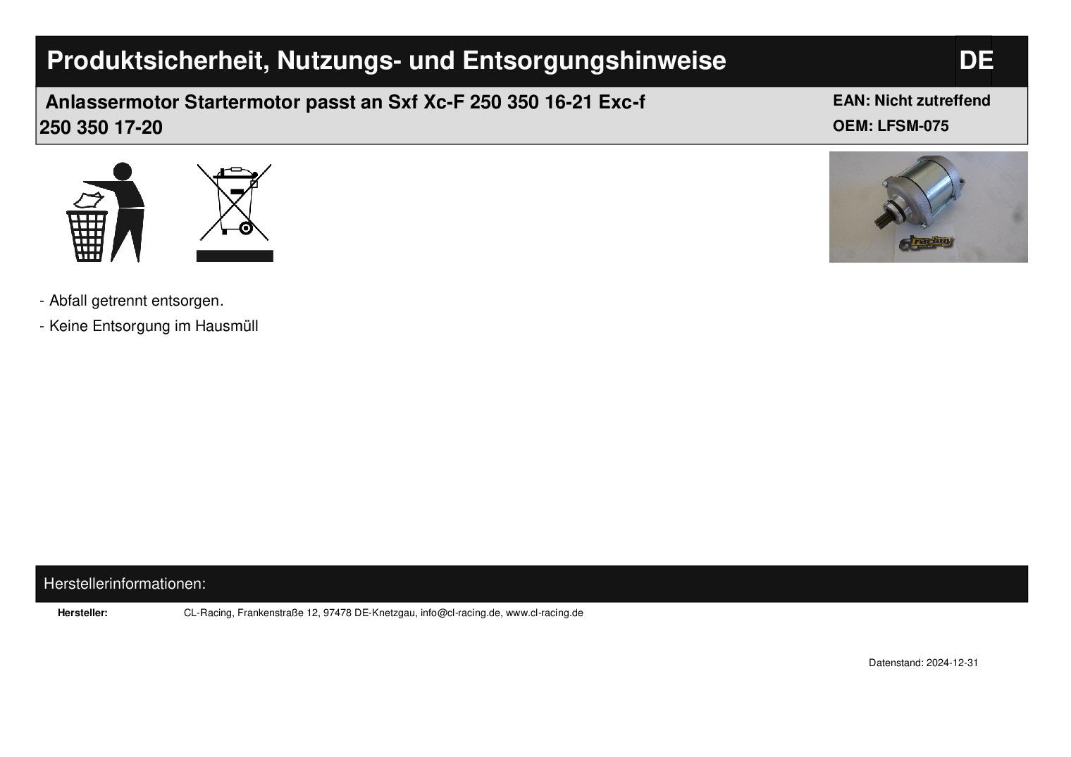In dieser Auktion gibt es folgenden Artikel zu kaufen: Anlasser aus dem Zubehör (siehe Foto) Modell: passend für KTM SX-F 250 Bj.: 2016 - 2021 (4-Takt) SX-F 350 Bj.: 2016 - 2021 (4-Takt) XC-F 250 Bj.: 2016 - 2021 (4-Takt) XC-F 350 Bj.: 2016 - 2021 (4-Takt) EXC-F 250 Bj.: 2017 - 2020 (4-Takt) EXC-F 350 Bj.: 2017 - 2021 (4-Takt) Lieferumfang: siehe Foto Artikelzustand: neu Hierbei handelt es sich um kein Originalteil! Bei Unklarheiten oder Fragen bitte erst E-Mail schreiben.