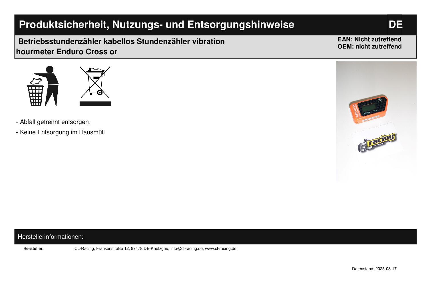 • Betriebsstundenzähler kabellos Stundenzähler vibration hour meter Enduro Cross o