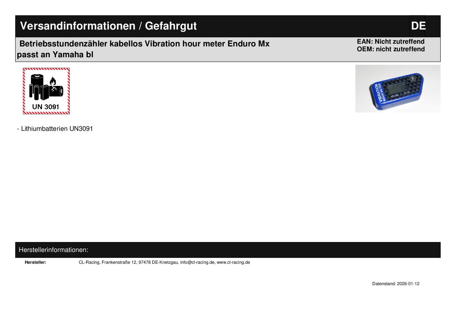 Titel: Betriebsstundenzähler kabellos Vibration hour meter Enduro Mx passt an Yamaha bl