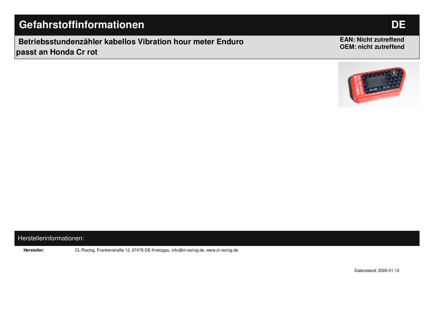 Titel: Betriebsstundenzähler kabellos Vibration hour meter Enduro passt an Honda Cr rot