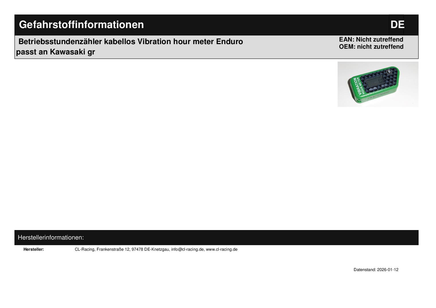 In dieser Auktion gibt es folgenden Artikel kaufen: Vibrations-Betriebsstundenzähler (siehe Foto) Artikelbeschreibung: wasserdichter, rückstellbarer Betriebsstundenzähler; kann leicht und schnell am Fahrzeug verbaut werden; ideal um Kundendienste (Öl-, Kolbenwechsel usw.) pünktlich durchführen zu können Betriebsstundenzähler ist kabellos, d. h. der Zählvorgang erfolgt automatisch, sobald der Motor startet Abmaße: 68 x 33 x 14 mm (L x B x H) Lieferumfang: 1 Stück Artikelzustand: neu Bei Unklarheiten oder Fragen bitte erst E-Mail schreiben.