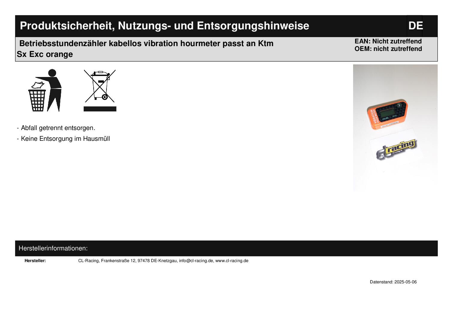 Herstellernummer: nicht zutreffend