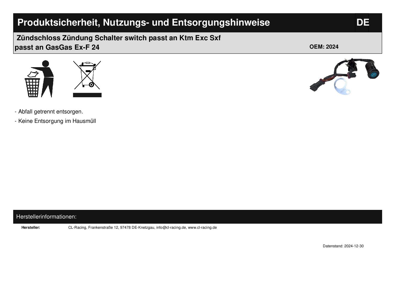 In dieser Auktion gibt es folgenden Artikel zu kaufen: Zündschloss mit Halterung (siehe Foto) Modell: passend für Ktm EXC TBI alle Modelle 2024 -2025 EXC-F alle Modelle Bj.: 2024 - 2025 SX/XC-F alle Modelle Bj.: 2023 - 2025 SXF Factory Editions, alle Modelle Bj.: 2022 - 2025 SXF alle Modelle Bj.: 2023 - 2025 XC-F alle Modelle Bj.: 2023 - 2025 XC-W alle Modelle Bj.: 2024 - 2025 XCF-W alle Modelle Bj.: 2024 - 2025 XW-F alle Modelle Bj.: 2024 - 2025 passend für Husqvarna FC, FX alle Modelle Bj.: 2023 - 2025 Rockstar Edition alle Modelle Bj.: 2022 - 2023 TC, TX TBI alle Modelle Bj.: 2023 - 2025 TE TBI / FE / FE-W / TE Pro alle Modelle Bj.: 2024 - 2025 passend für GasGas alle Modelle 125 - 500 ccm Bj.: 2024 - 2025 Lieferumfang: 1 Stück Artikelzustand: neu Bei Unklarheiten oder Fragen bitte erst E-Mail schreiben.