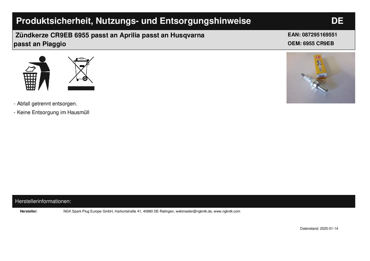 In dieser Auktion gibt es folgenden Artikel zu kaufen: Zündkerze (siehe Foto) Fahrzeug: passend für Aprilia RSV4 1000 R Bj.: 2010 - 2013 passend für Benelli TNT 899 Century Racer Bj.: 2011 - 2012 TNT 899 Naked Tre Bj.: 2012 - 2017 TNT 1130 R Bj.: 2013- 2017 passend für Moto Corsaro 1200 ZZ Bj.: 2017 - 2021 Granpasso 1200 Bj.: 2008 - 2022 Scrambler 1200 Bj.: 2009 - 2013 passend für Norton Commando 961 Cafe Racer Bj.: 2010 - 2019 Commando 961 Sport Bj.: 2010 - 2017 passend für Peugeot Geopolis 125 Executive Bj.: 2007 - 2011 Premium 125 Bj.: 2007 - 2012 Satelis 125 Avenue Bj.: 2008 - 2009 passend für Yamaha YXZ 1000 R E Bj.: 2016 - 2023 Typ: 6955 CR9EB Bitte vor dem Kauf Typ vergleichen! Lieferumfang: 1 Stück Artikelzustand: neu Bei Unklarheiten oder Fragen bitte erst E-Mail schreiben.