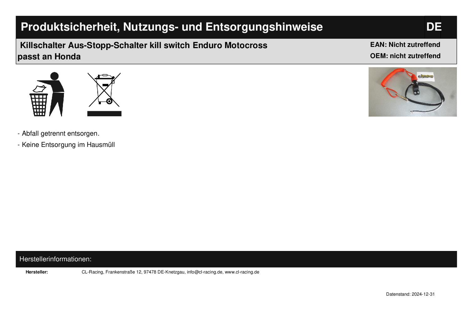 Titel: Killschalter Aus-Stopp-Schalter kill switch Enduro Motocross passt an Honda