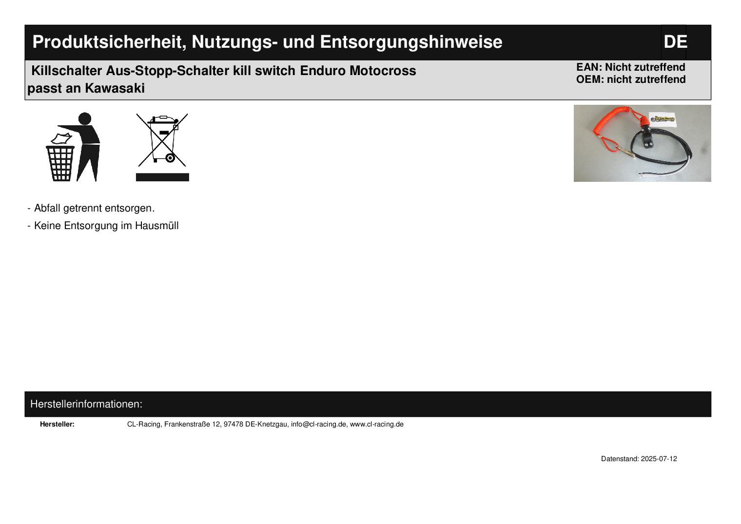 In dieser Auktion gibt es folgenden Artikel zu kaufen: Not-Aus-Schalter (siehe Foto) Artikelbeschreibung: ideal für Crosser, Quads, Jet-Ski oder ähnliche Fahrzeuge Beim Abziehen des Seils (siehe Bild 1) wird der Stromkreis geöffnet. Das Fahrzeug schaltet sich aus. Artikelzustand: neu Lieferumfang: 1 Stück Bei Unklarheiten oder Fragen bitte erst E-Mail schreiben.