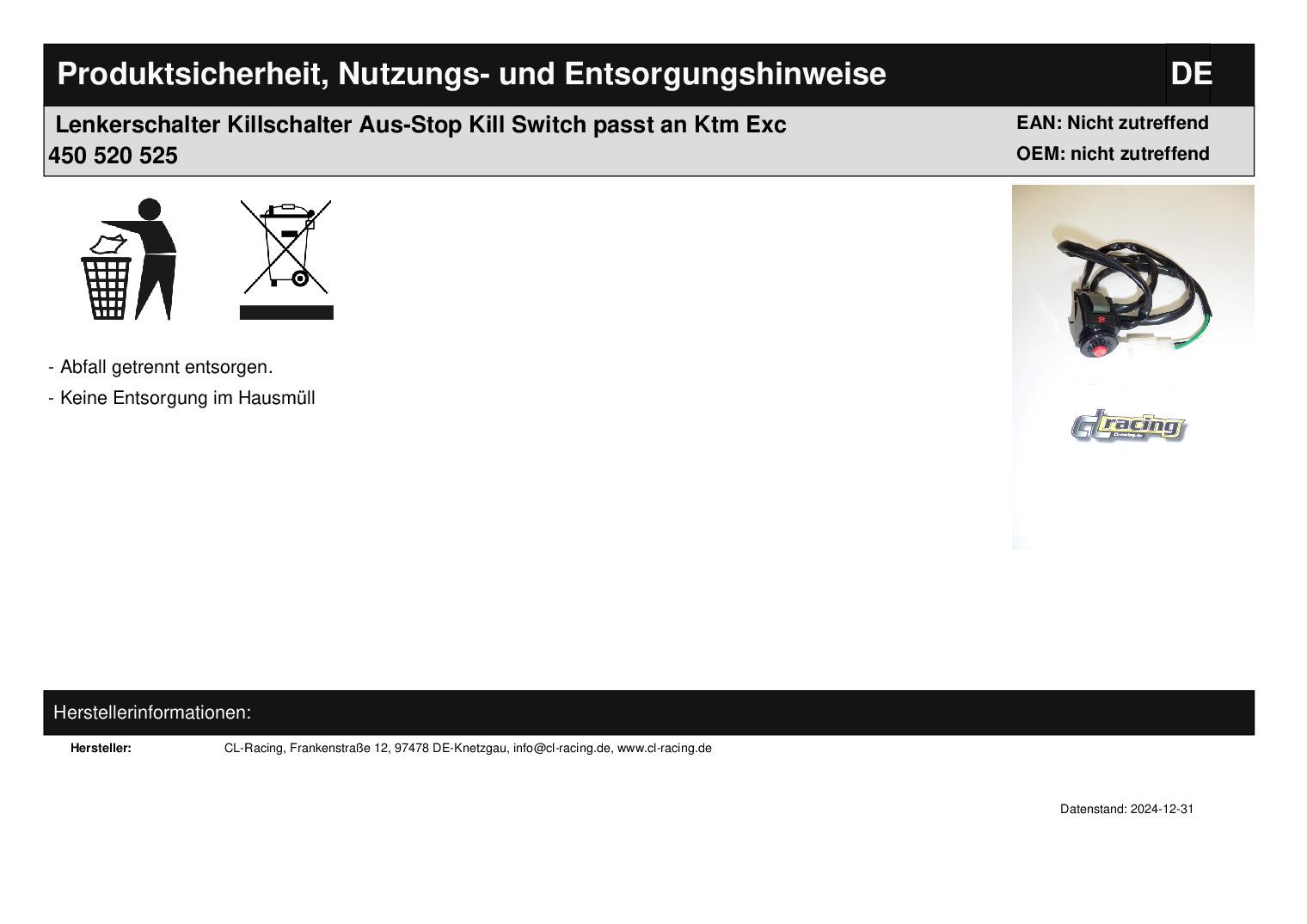 • Lenkerschalter Killschalter Aus-Stop Kill Switch passt an Ktm Exc 450 520 525
