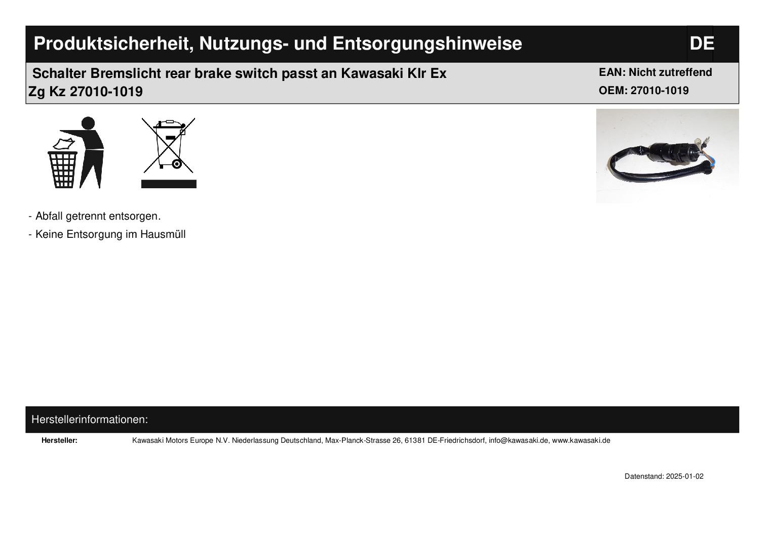 In dieser Auktion gibt es folgenden Artikel zu kaufen: Modell: passend für Kawasaki CONCOURS ZG100 Bj.: 1986 - 2005 EX 500 Bj. 1987 - 1992 KLR 250 / 650 Bj.: 1987 - 2001 LTD 305 (KZ 205-B3) Bj.: 1988 KL 650 Bj.: 2001 - 2005 KZ 1000 Bj.: 2001 - 2006 Lieferumfang: 1 Stück Artikelzustand: neu aus Geschäftsauflösung, mit minimalen Lagerspuren; Zustand siehe Foto Bei Unklarheiten oder Fragen bitte erst E-Mail schreiben.