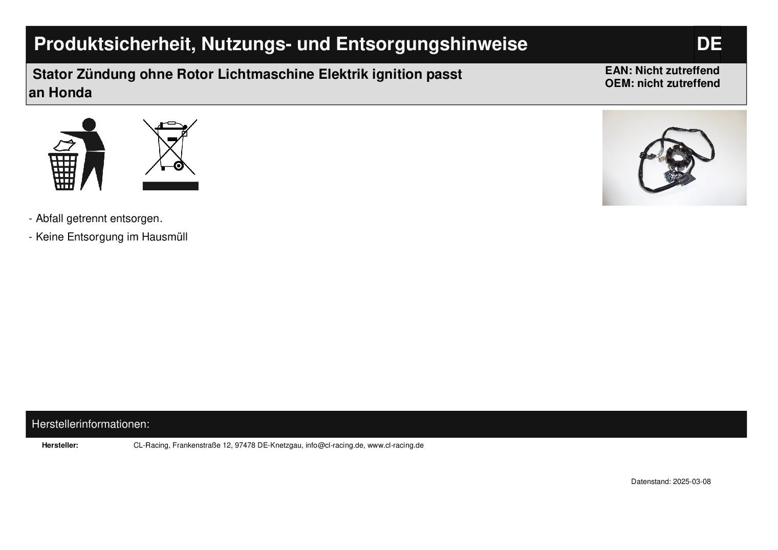 In dieser Auktion gibt es folgenden Artikel zu kaufen: Stator (siehe Foto) Modell: passend für Honda Lieferumfang: siehe Foto Artikelzustand: normale Gebrauchsspuren vorhanden; Zustand siehe Foto Weitere Teile auf Anfrage! Bei Unklarheiten oder Fragen bitte erst E-Mail schreiben.