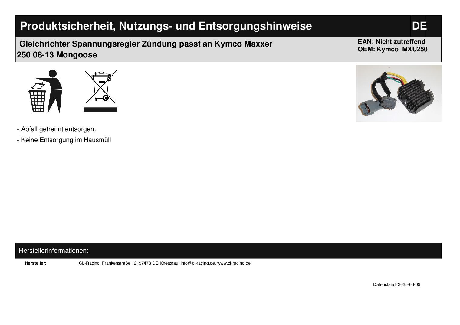 Gleichrichter/Spannungsregler (siehe Foto) Modell: passen für Kymco KXR 250 Bj.: 2004 Maxxer 250 Bj.: 2008 - 2013 Maxxer 300 Bj.: 2006 - 2013 MXU 150 Bj.: --- MXU 250 Bj.: 2005 - 2013 MXU 300 Bj.: 2006 MXU 300 R Bj.: 2010 - 2013 Mongoose 250 Bj.: 2003 - 2008 Mongoose 300 Lieferumfang: 1 Stück Artikelzustand: neu Bei Unklarheiten oder Fragen bitte erst E-Mail schreiben