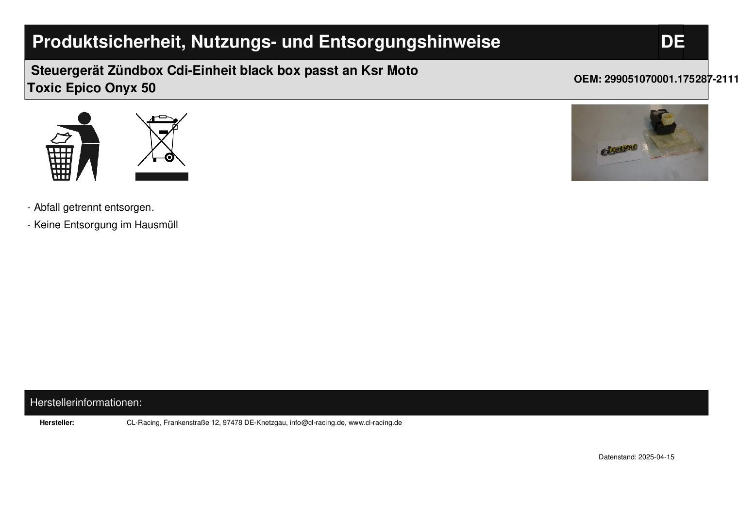 In dieser Auktion gibt es folgenden Artikel zu kaufen: Zündbox (siehe Foto) Modell: passend für KSR Moto Toxic Epico Onyx 50 Bj.: unbekannt Lieferumfang: siehe Foto Artikelzustand: neu aus Geschäftsauflösung, mit leichten Lagerspuren; Zustand siehe Foto Bei Unklarheiten oder Fragen bitte erst E-Mail schreiben.