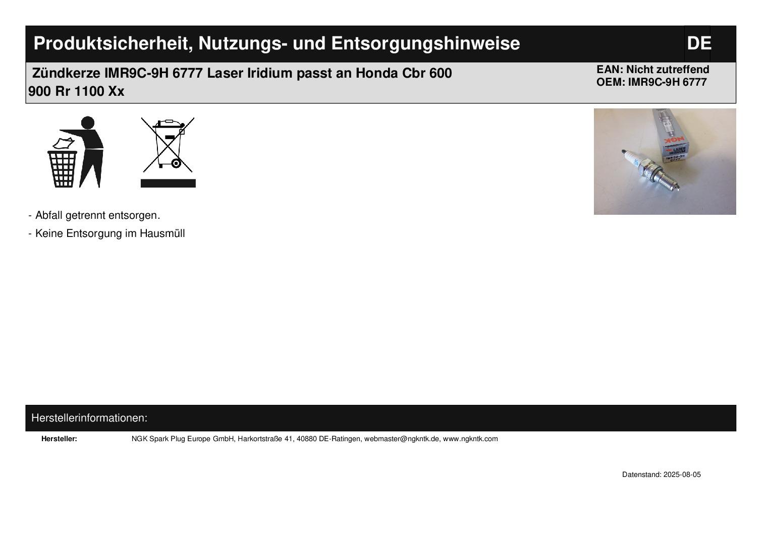 In dieser Auktion gibt es folgenden Artikel zu kaufen: Zündkerze (siehe Foto) Typ: IMR9C-9H 6777 Bitte vor dem Kauf Typ vergleichen! Lieferumfang: 1 Stück Artikelzustand: neu Bei Unklarheiten oder Fragen bitte erst E-Mail schreiben.