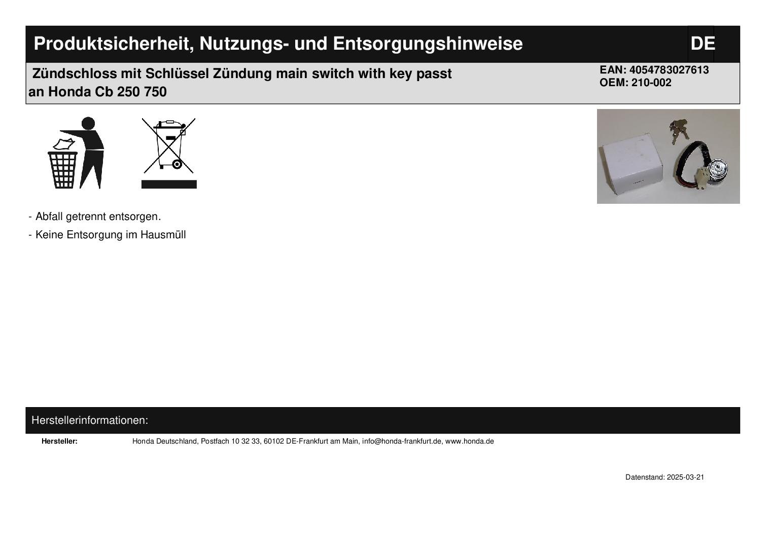 In dieser Auktion gibt es folgenden Artikel zu kaufen: Zündschloss + Schlüssel (siehe Foto) Modell: passend für Honda CB 250 K6CB 750 K6 Bj.: --- Lieferumfang: siehe Foto Artikelzustand: neu aus Geschäftsauflösung, mit minimalen Lagerspuren; Zustand siehe Foto Bei Unklarheiten oder Fragen bitte erst E-Mail schreiben.