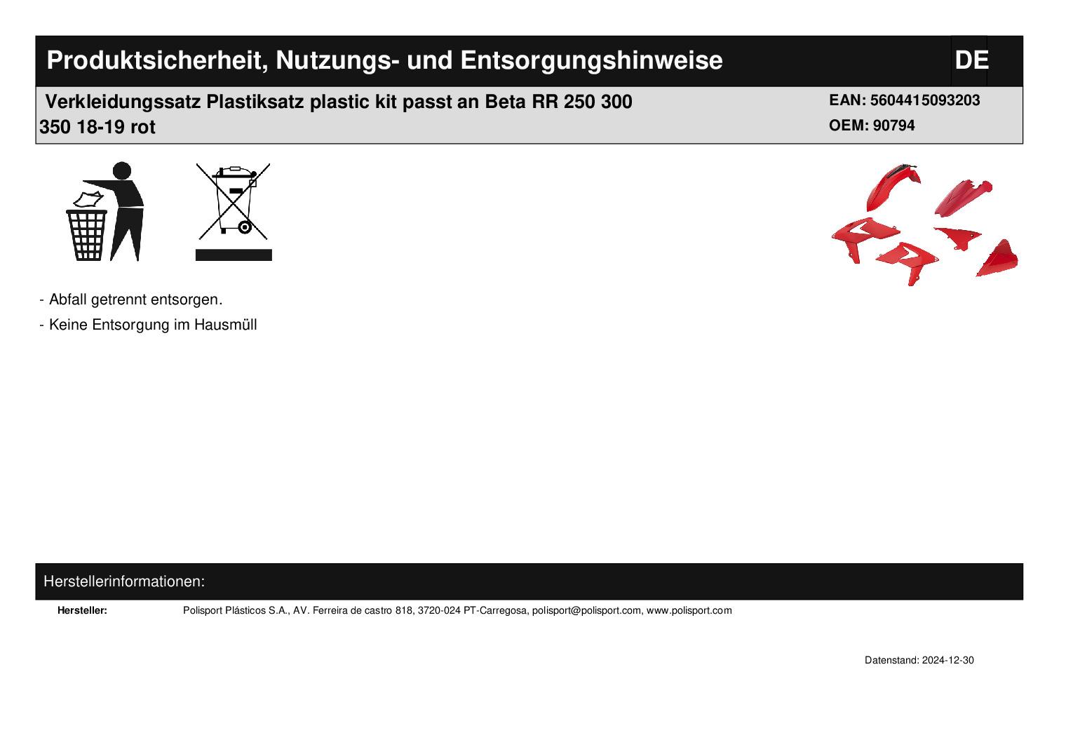 Titel: Verkleidungssatz Plastiksatz plastic kit passt an Beta RR 250 300 350 18-19 rot