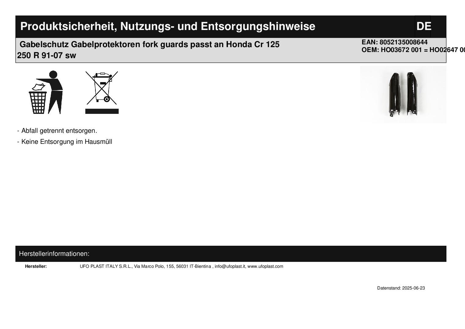 Titel: Gabelschutz Gabelprotektoren fork guards passt an Honda Cr 125 250 R 91-07 sw