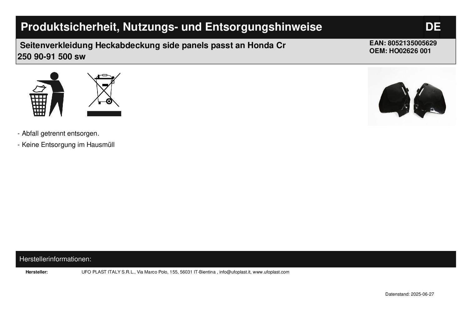 In dieser Auktion gibt es folgenden Artikel zu kaufen: Seitenverkleidung (ähnlich Foto) Modell: passend für Honda CR 125 Bj.: 91 - 92 CR 250 Bj.: 90 - 91 CR 500 Bj.: 91 - 01 Lieferumfang: siehe Foto Artikelzustand: neu Bei Unklarheiten oder Fragen bitte erst E-Mail schreiben.