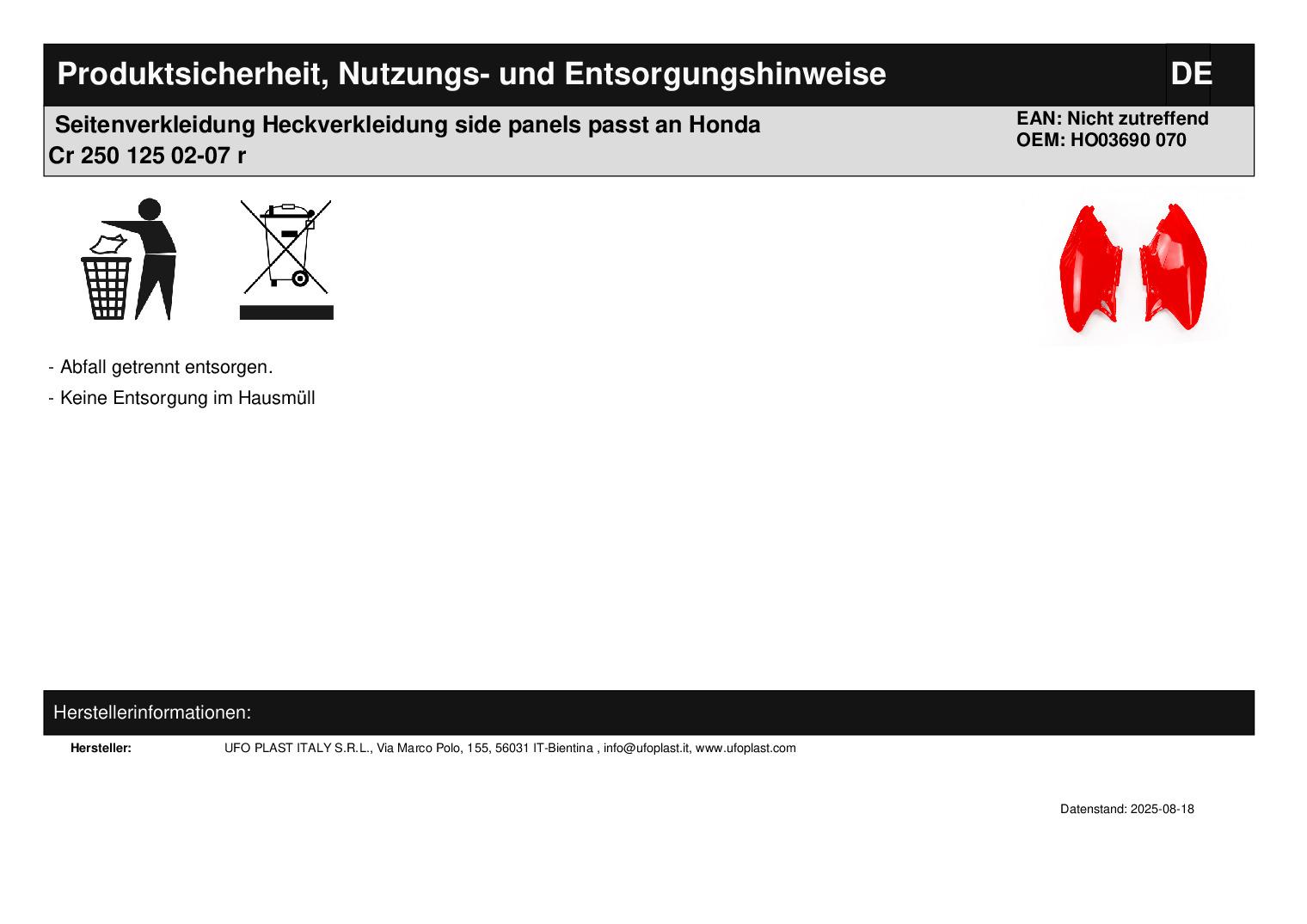 In dieser Auktion gibt es folgenden Artikel zu kaufen: Seitenverkleidung (siehe Foto) Fahrzeug: passend für Honda CR 125, 250 Bj.: 02 - 07 Lieferumfang: siehe Foto Artikelzustand: neu Bei Unklarheiten oder Fragen bitte erst E-Mail schreiben.