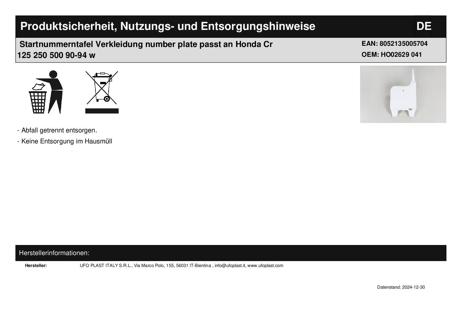 In dieser Auktion gibt es folgenden Artikel zu kaufen: Startnummerntafel (siehe Foto) Modell: passend für Honda CR 125 250 500 Bj.: 1990 - 1994 Lieferumfang: siehe Foto Artikelzustand: neu Bei Unklarheiten oder Fragen bitte erst E-Mail schreiben.