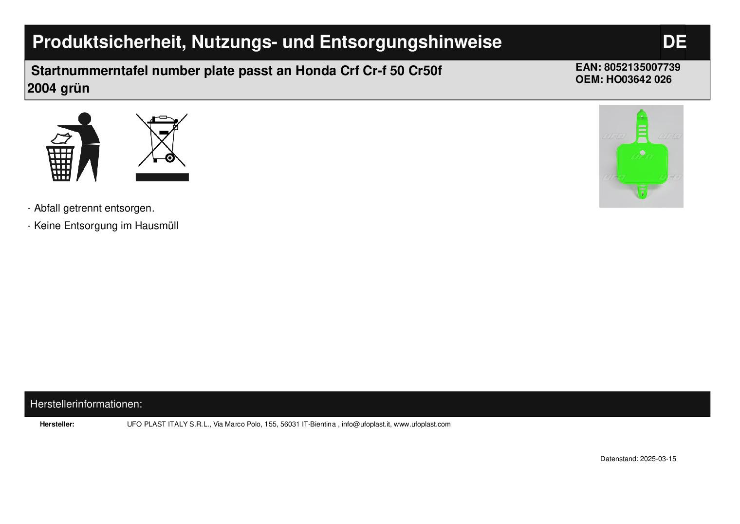 In dieser Auktion gibt es folgenden Artikel zu kaufen: Startnummerntafel (ähnlich Foto) Modell: passend für Honda CRF 50 Bj.: 2004 Lieferumfang: siehe Foto Artikelzustand: neu aus Geschäftsauflösung, mit minimalen Lagerspuren; Zustand ähnlich Foto Bei Unklarheiten oder Fragen bitte erst E-Mail schreiben.