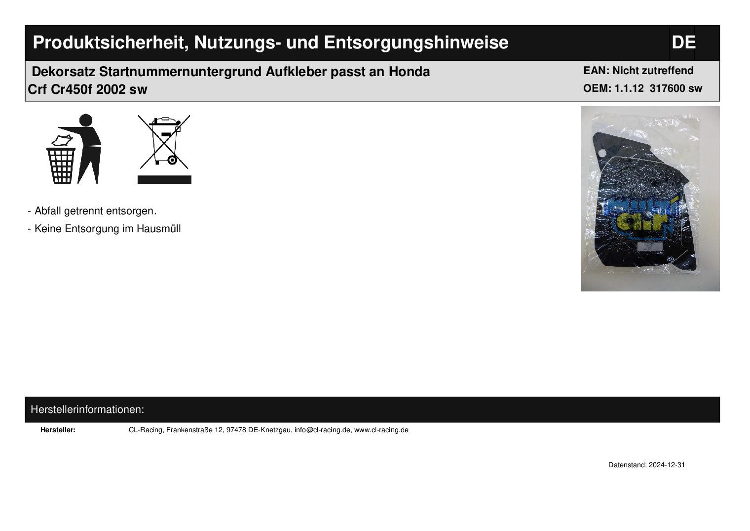 CRF 450 Bj.: 02 Lieferumfang: siehe Foto Es werden nur die Aufkleber geliefert, die auf dem Foto zu sehen sind. Artikelzustand: neu aus Geschäftsauflösung; Sticker liegen schon länger; daher werden diese als defekt verkauft; Zustand siehe Foto Bei Unklarheiten oder Fragen bitte erst E-Mail schreiben.