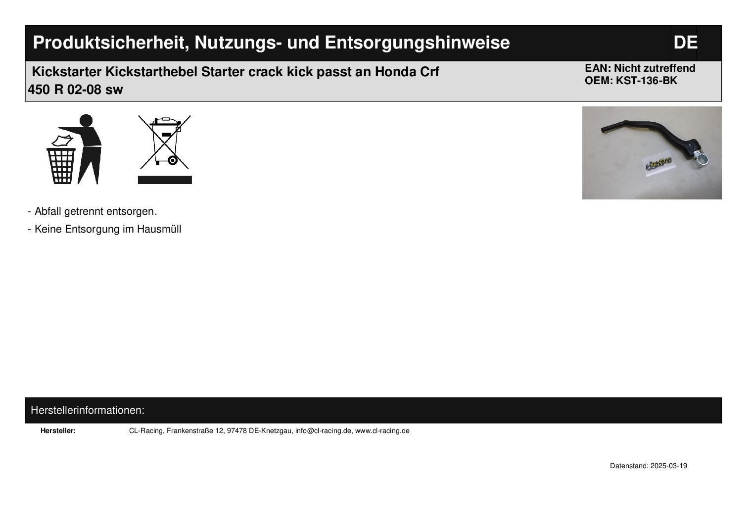 In dieser Auktion gibt es folgenden Artikel zu kaufen: Kickstarter (ähnlich Foto) Modell: passend für Honda Cr-f 450 R Bj.: 2002 - 2008 (4-Takt) Cr-f 450 X Bj.: 2005 (4-Takt) Lieferumfang: 1 Stück Artikelzustand: neu Bei Unklarheiten oder Fragen bitte erst E-Mail schreiben.