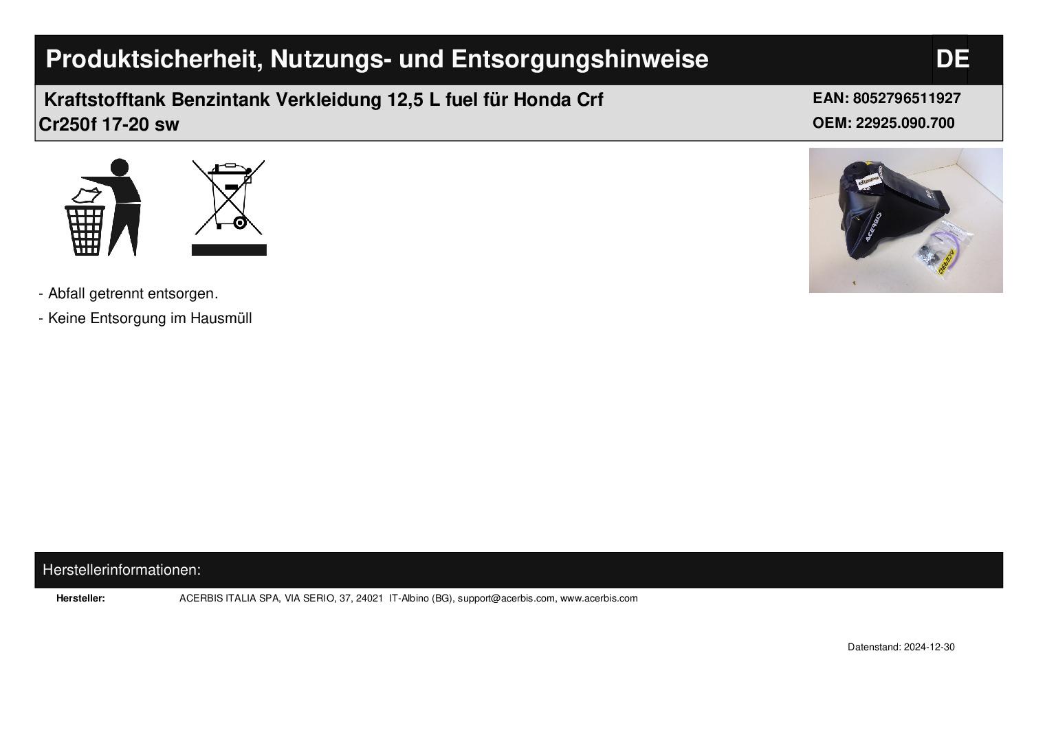 In dieser Auktion gibt es folgenden Artikel zu kaufen: 12,5 Liter Kraftstofftank (siehe Foto) Modell: passend für Honda CRF 250 L-M Bj.: 17 - 20 Lieferumfang: siehe Foto Artikelzustand: neu Bei Unklarheiten oder Fragen bitte erst E-Mail schreiben.