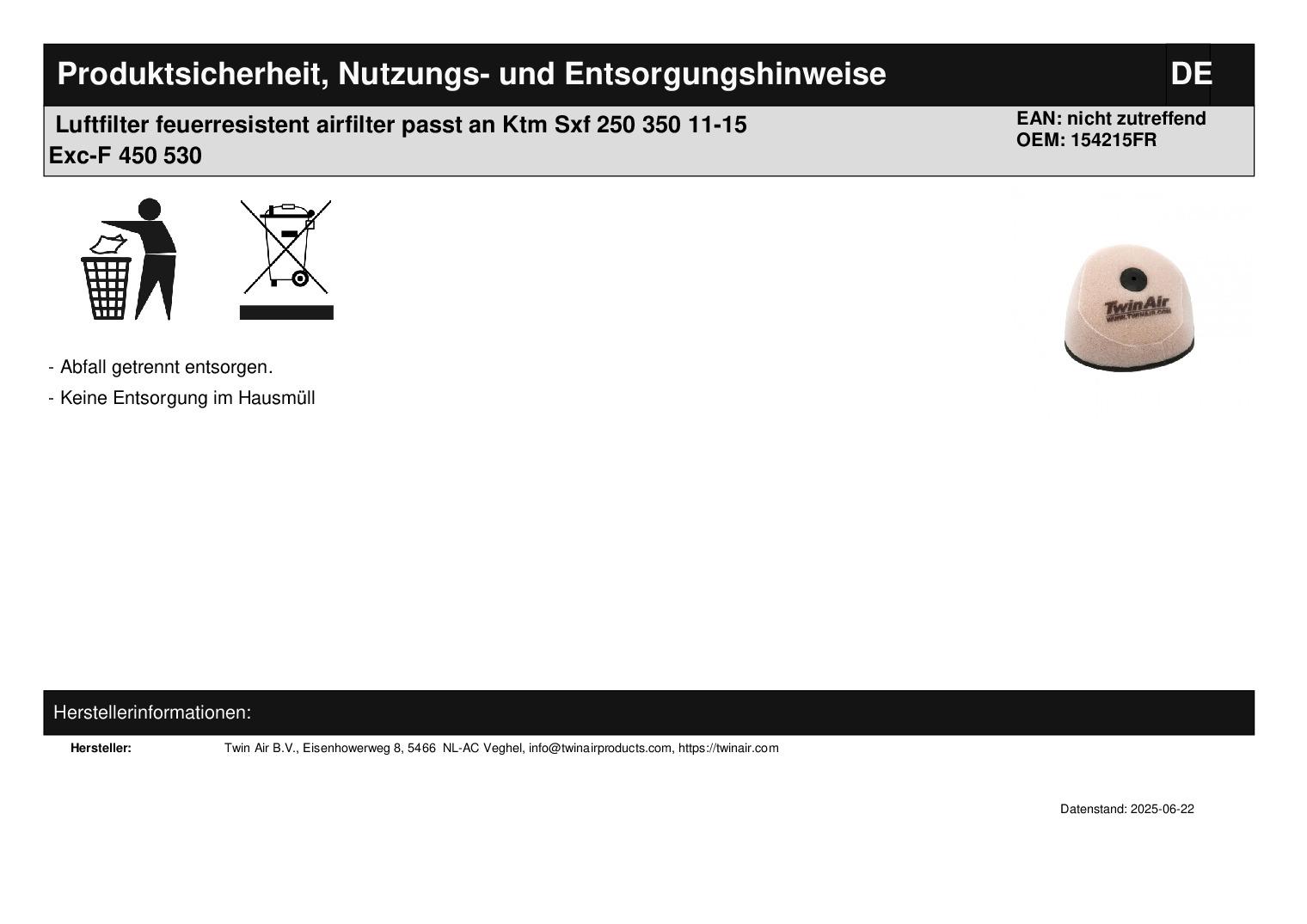 In dieser Auktion gibt es folgenden Artikel zu kaufen: L uftfilter (siehe Foto) Modell: passend für Ktm SXF 250, 350, 450 Bj.: 11 - 15 EXC-F 250 Bj.: 12 - 15 EXC-F 350, 450 Bj.: 11 - 16 EXC-F 500, 525, 530 Bj.: 12 - 16 XC-F 250, 350, 450 Bj.: 11 - 15 XCF-W 250 Bj.: 12 - 15 XCF-W 350 Bj.: 11 - 16 XC-W 450 Bj.: 11 - 16 passend für Husqvarna FC 250, 450 Bj.: 14 - 15 FC 350 Bj.: 13 - 15 FE 250 Bj.: 14 - 16 FE 350, 450 Bj.: 13 - 16 FE 501 Bj.: 14 - 16 FS 450 Bj.: 14 - 15 Details: - feuerresistent - mit fließfähigem, rückschlagfestem Schaumstoff, der auf die Filterinnenseite laminiert ist - wasch- und wieder verwendbar (40 bis 50 Mal ist üblich) - Zweilagen-Schaumstoff (nach Vorgabe mit gleichgroßen und verteilten Zellen) - hohe Qualität (von Hand zusammengebaut und auf perfekten Sitz geprüft) Lieferumfang: 1 Stück Artikelzustand: neu Es handelt sich hierbei um kein Originalteil Bei Unklarheiten oder Fragen bitte erst E-Mail schreiben.