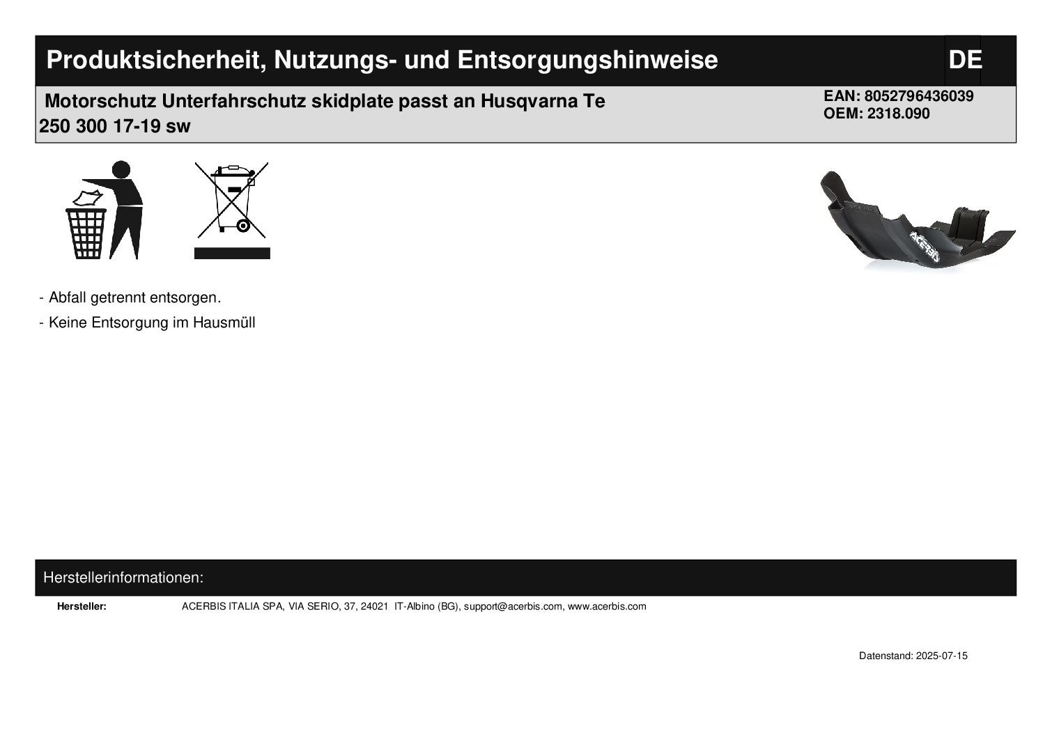 In dieser Auktion gibt es folgenden Artikel zu kaufen: Motorschutz (siehe Foto) Modell: passend für Ktm Exc 250 ab Modell 2017/2018 Bj.: 07.2016 - 2019 (2-Takt) Exc 300 ab Modell 2017/2018 Bj.: 07.2016 - 2019 (2-Takt) passend für Husqvarna Te, Tc 250 ab Modell 2017 Bj.: 07.2016 - 2019 (2-Takt) Te, Tc 300 ab Modell 2017 Bj.: 07.2016 - 2019 (2-Takt)Lieferumfang: Motorschutz mit Anbauteile und Anbauanleitung Artikelzustand: neu Bei Unklarheiten oder Fragen bitte erst E-Mail schreiben.